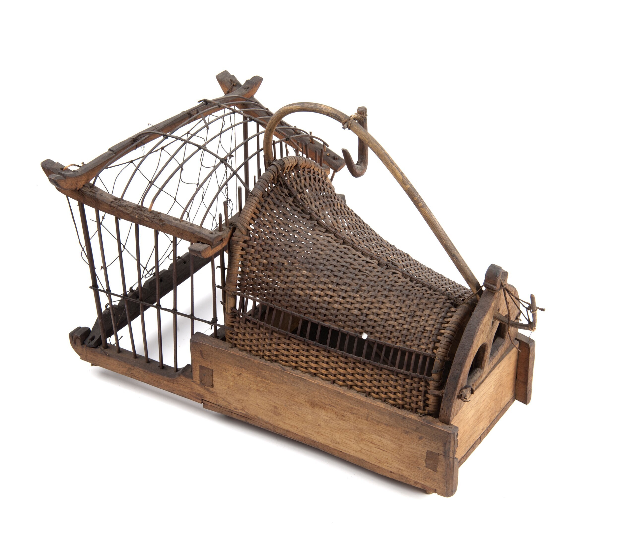 Gevlochten mand op poten van bamboe