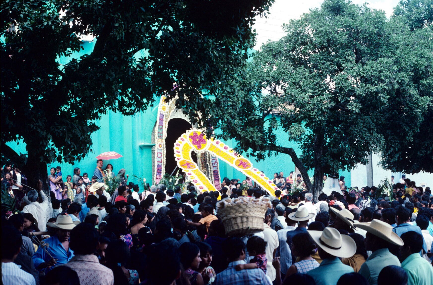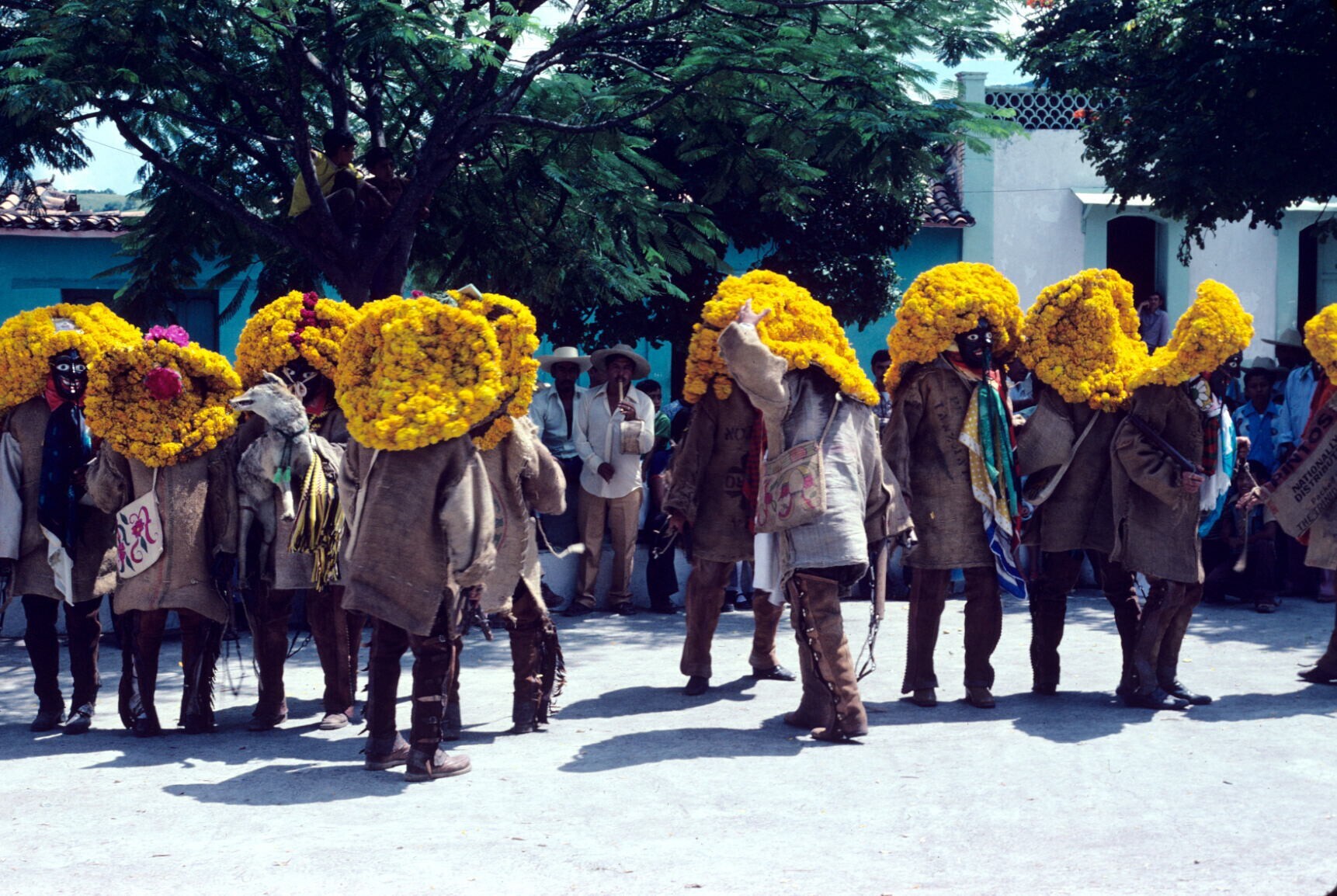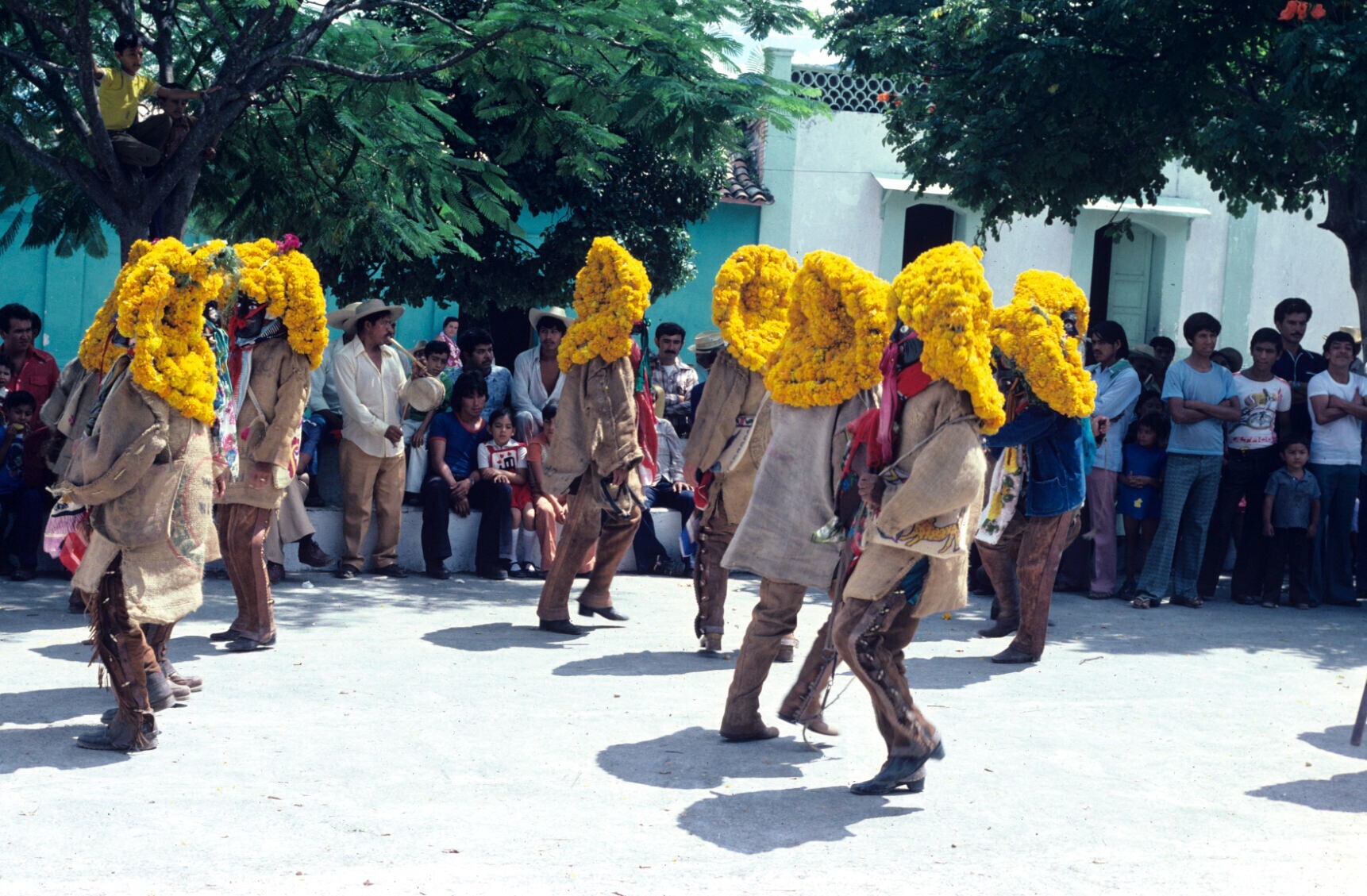 dansers in dans van de Tlacololeros; op voorgrond: d...