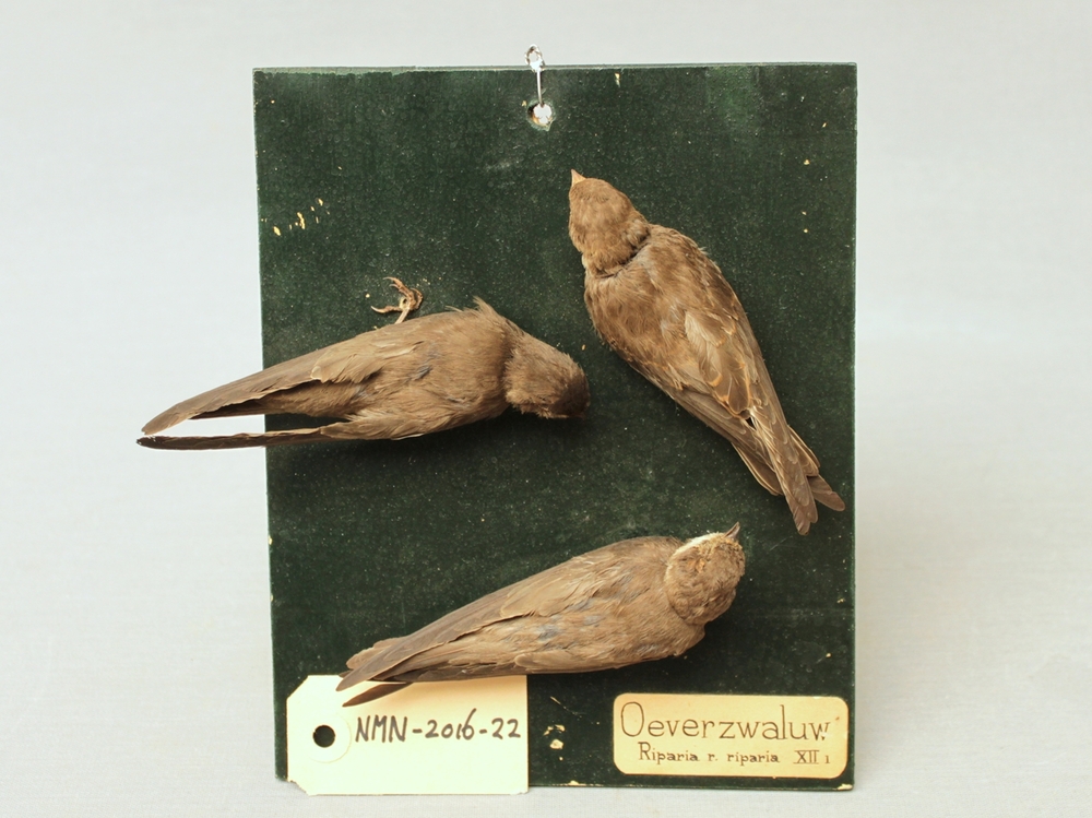 3 oeverzwaluwen op plank