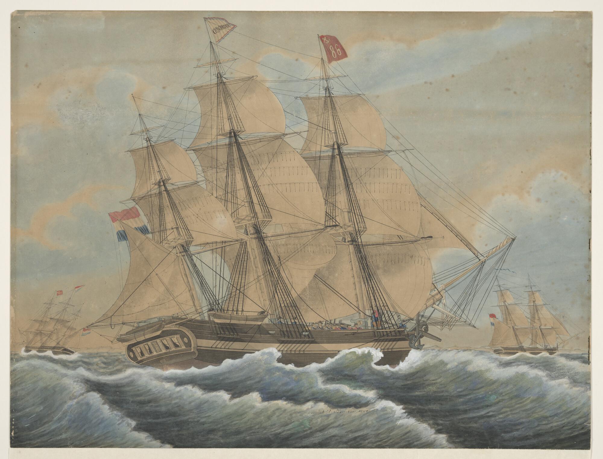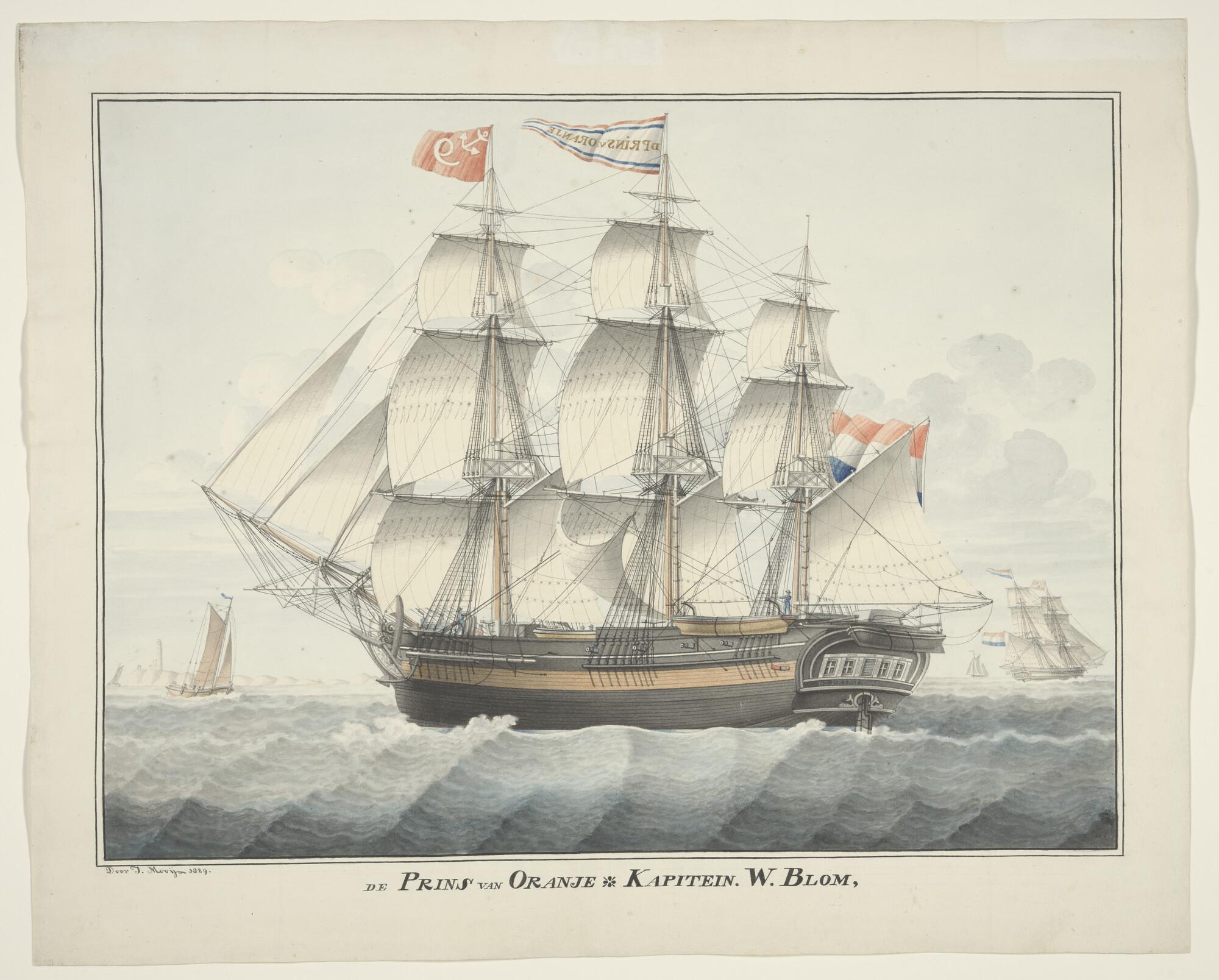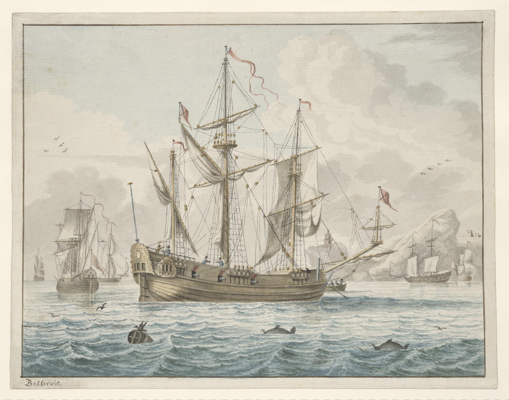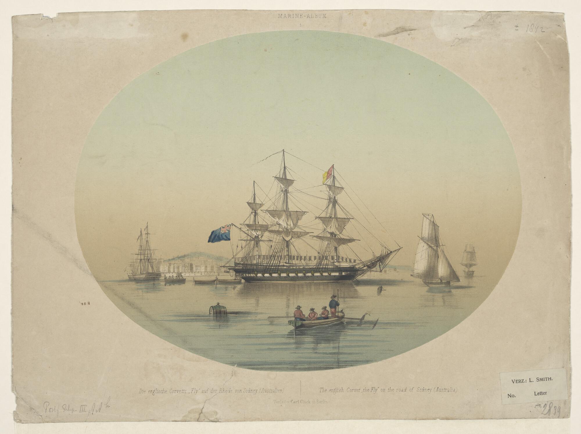 Het Engelse korvet 'Fly' op de rede van Sidney