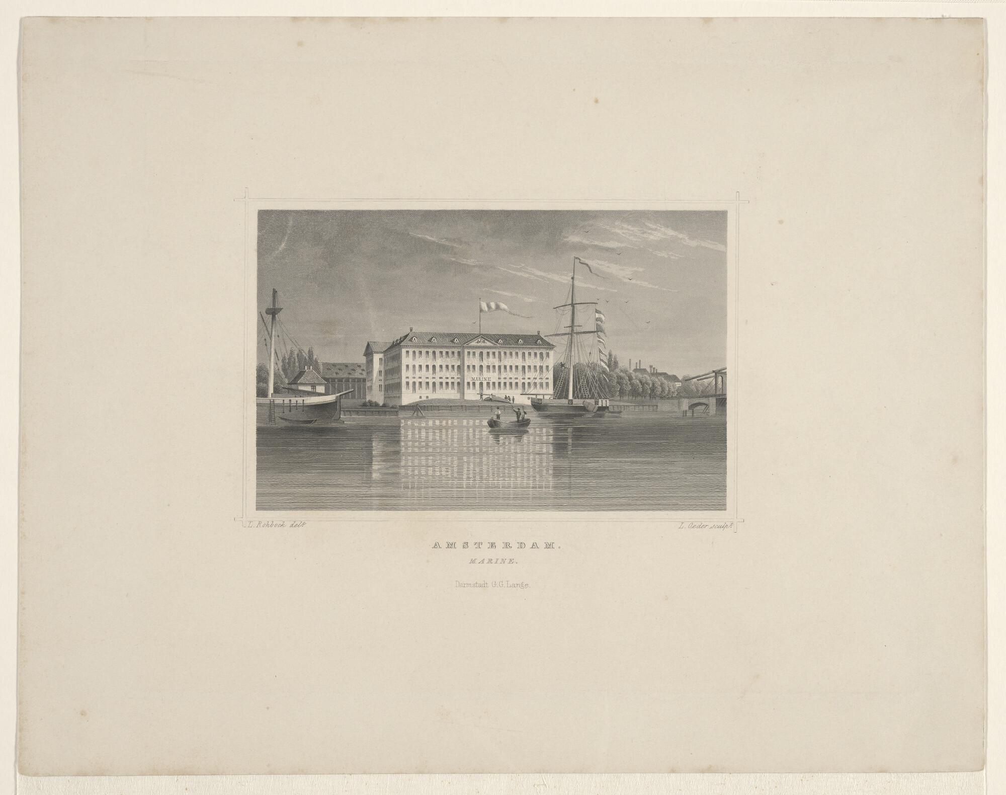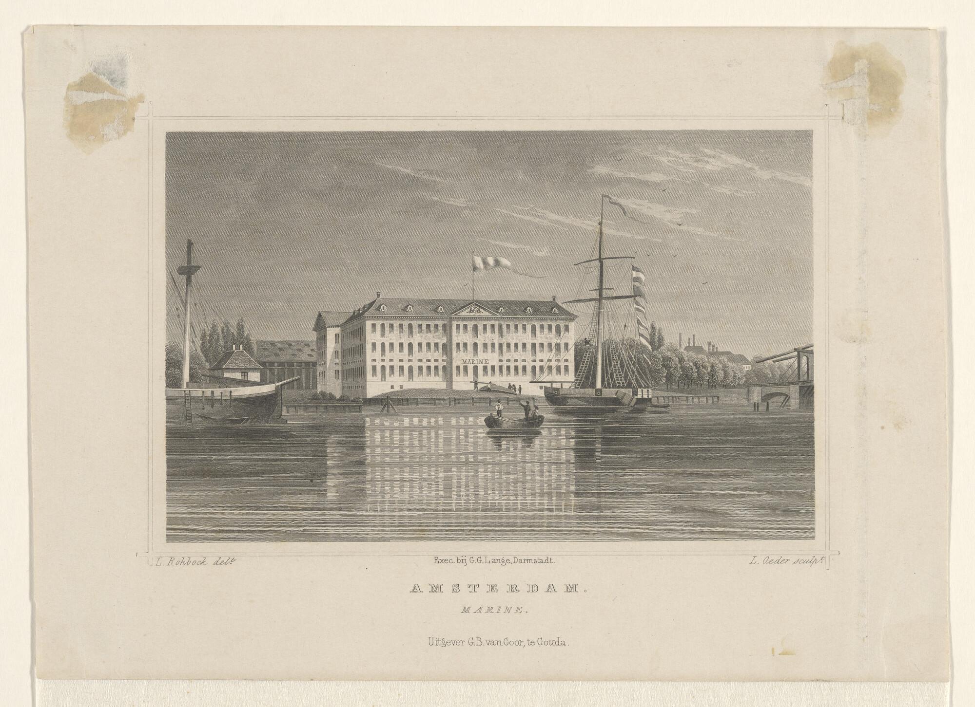 Gezicht op het Zeemagazijn en de marinewerf te Amste...
