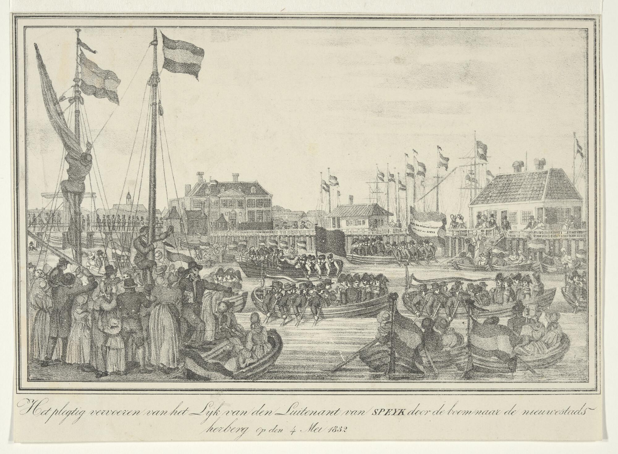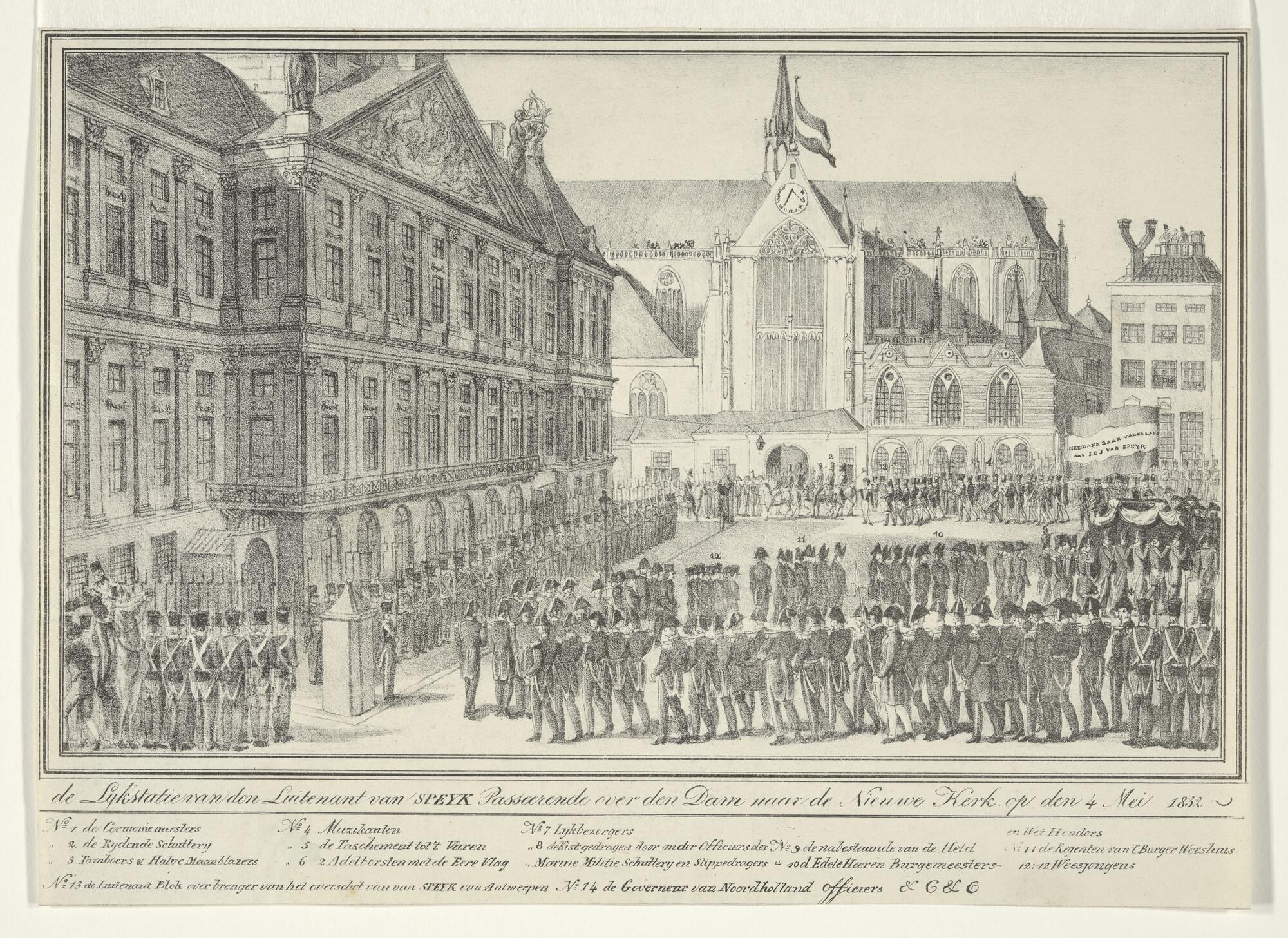 Plechtige lijkvaart van Van Speyk met rechts de nieu...