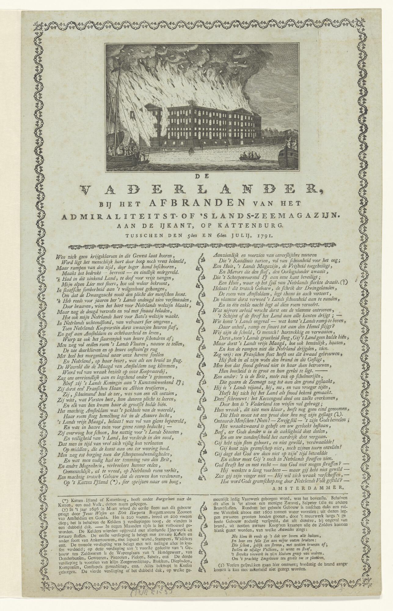 Brand in 's Lands Zeemagazijn te Amsterdam, 6 juli 1791