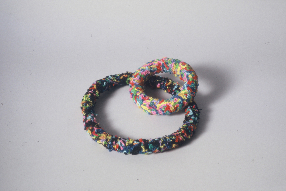 Broche/armband van staal, hout en garen