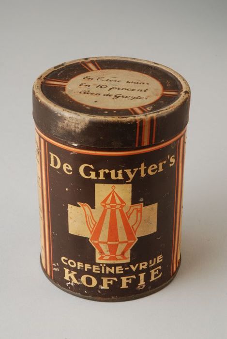 Rond koffieblik met los deksel, "De Gruyter's coffeï...