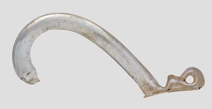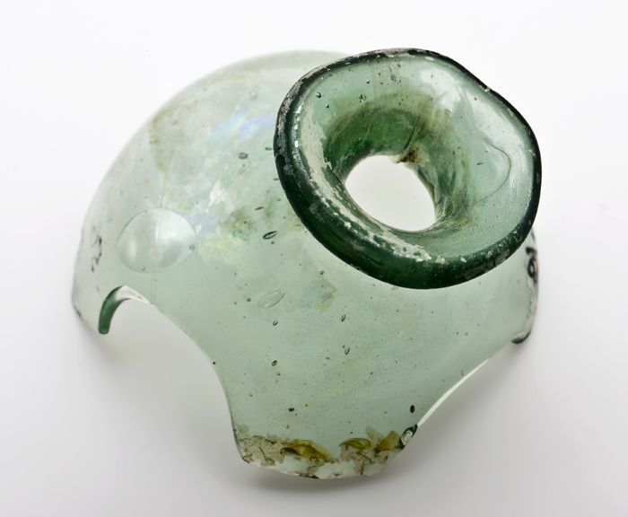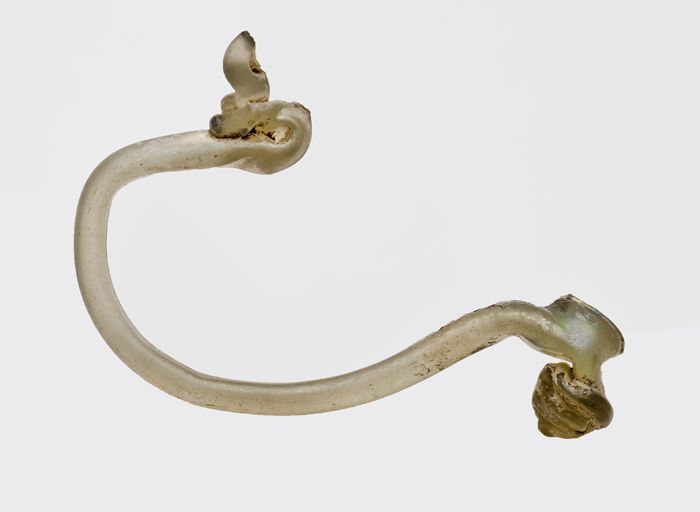 Fragment van glazen oor met omgekruld uiteinde, held...