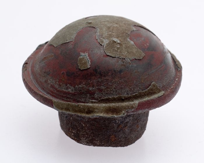 Kop van een ijzeren klinknagel, afkomstig van de eer...