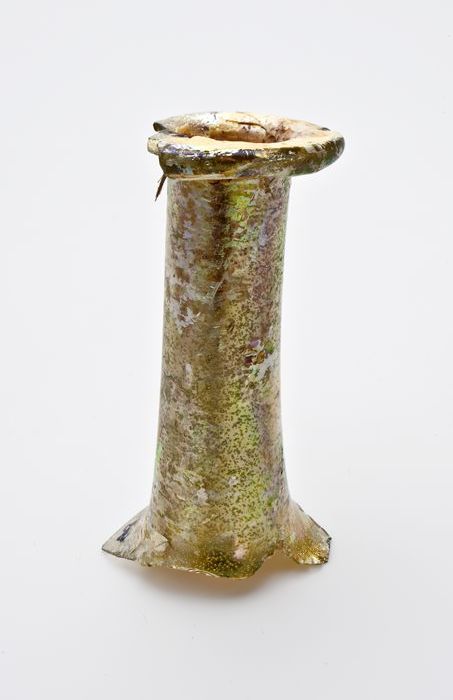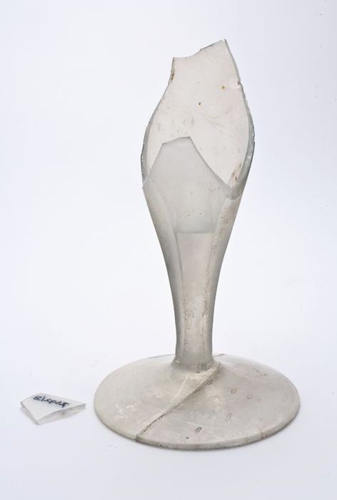 Voetfragment van kelkglas of trompetglas met facet g...