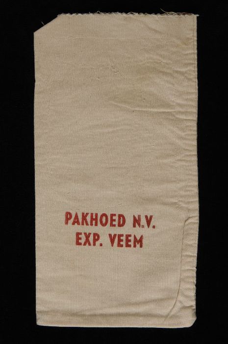 Monsterzak van wit katoen met opdruk "N.V. Handelsve...