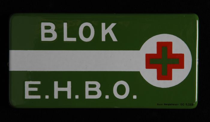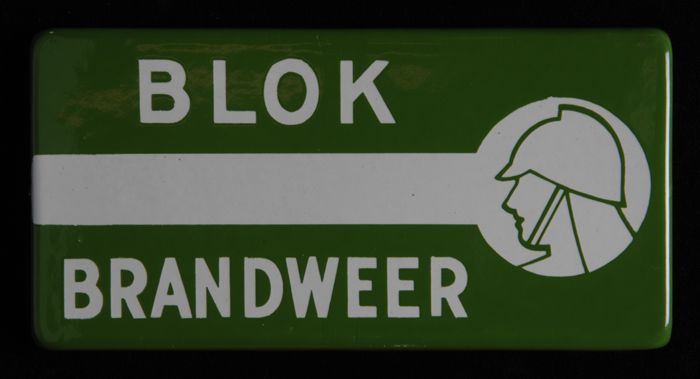 Rechthoekig groen-wit emaille gevelbordje met "BLOK ...