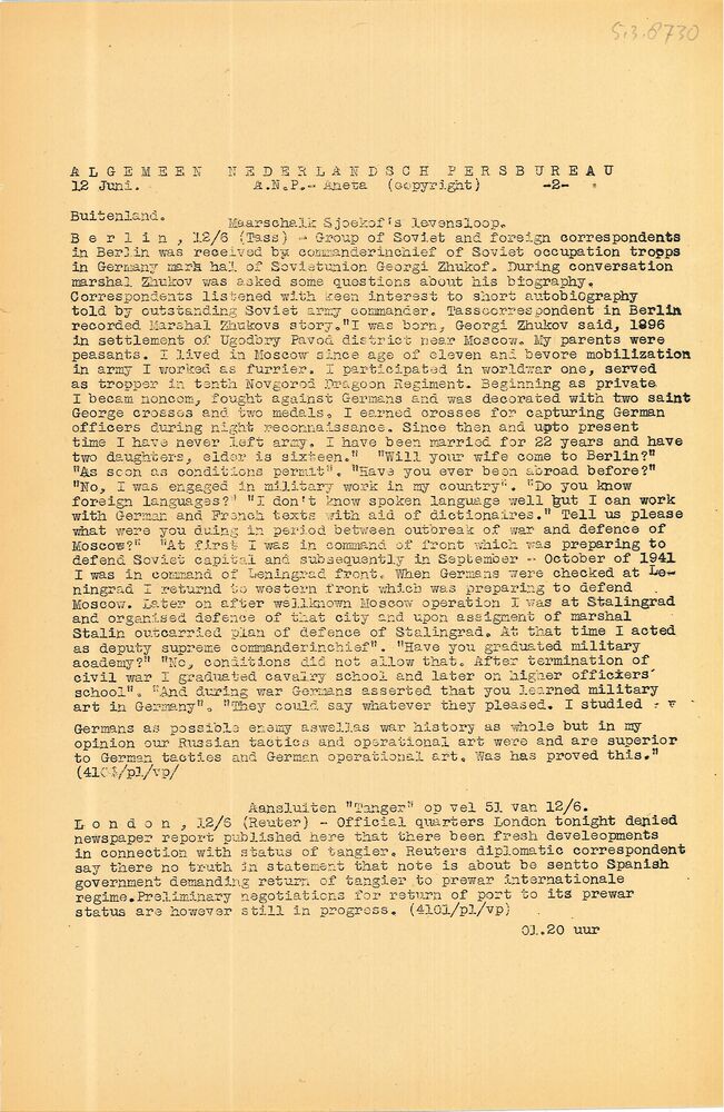 Vel: Algemeen Nederlandsch Persbureau, mededelingen,...