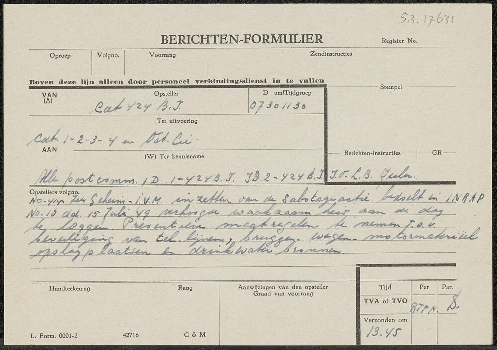 berichten formulier van cdt 424 B.I aan alle compagn...