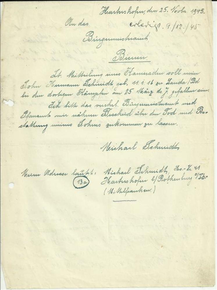 Aan De Burgemeester van Bienen
