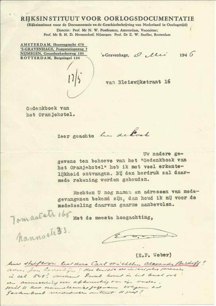 Van dhr E.P. Weber van het Rijksinstituut voor Oorlo...