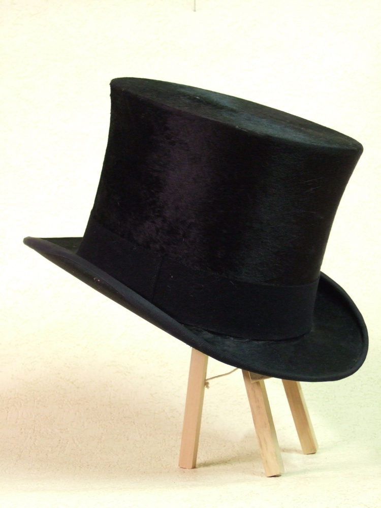 Hoge hoed van zwarte stof, circa 1900
