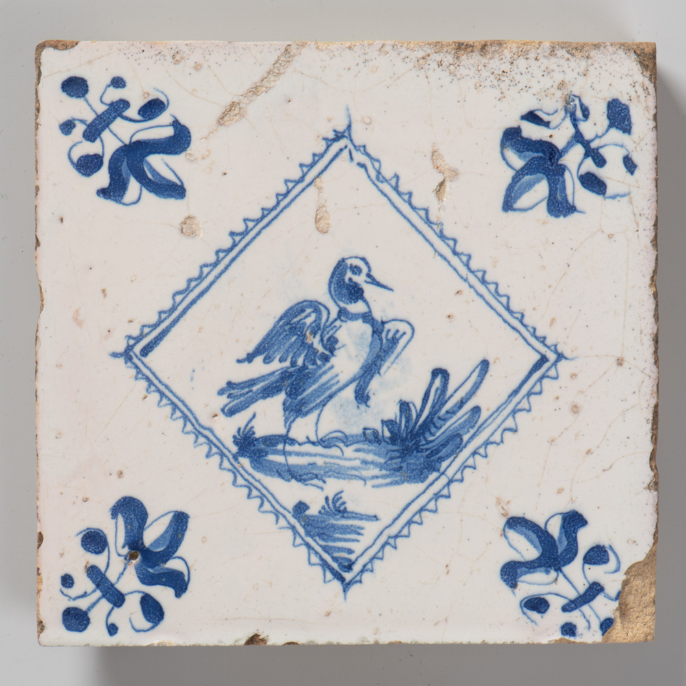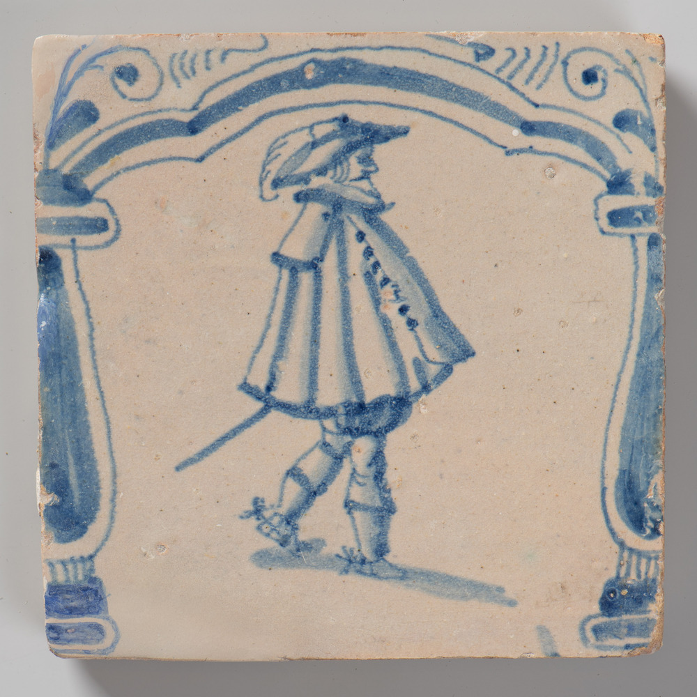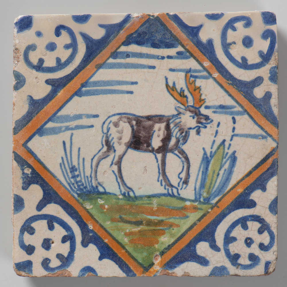 tegel van keramiek met tinglazuur, voorstellende: he...