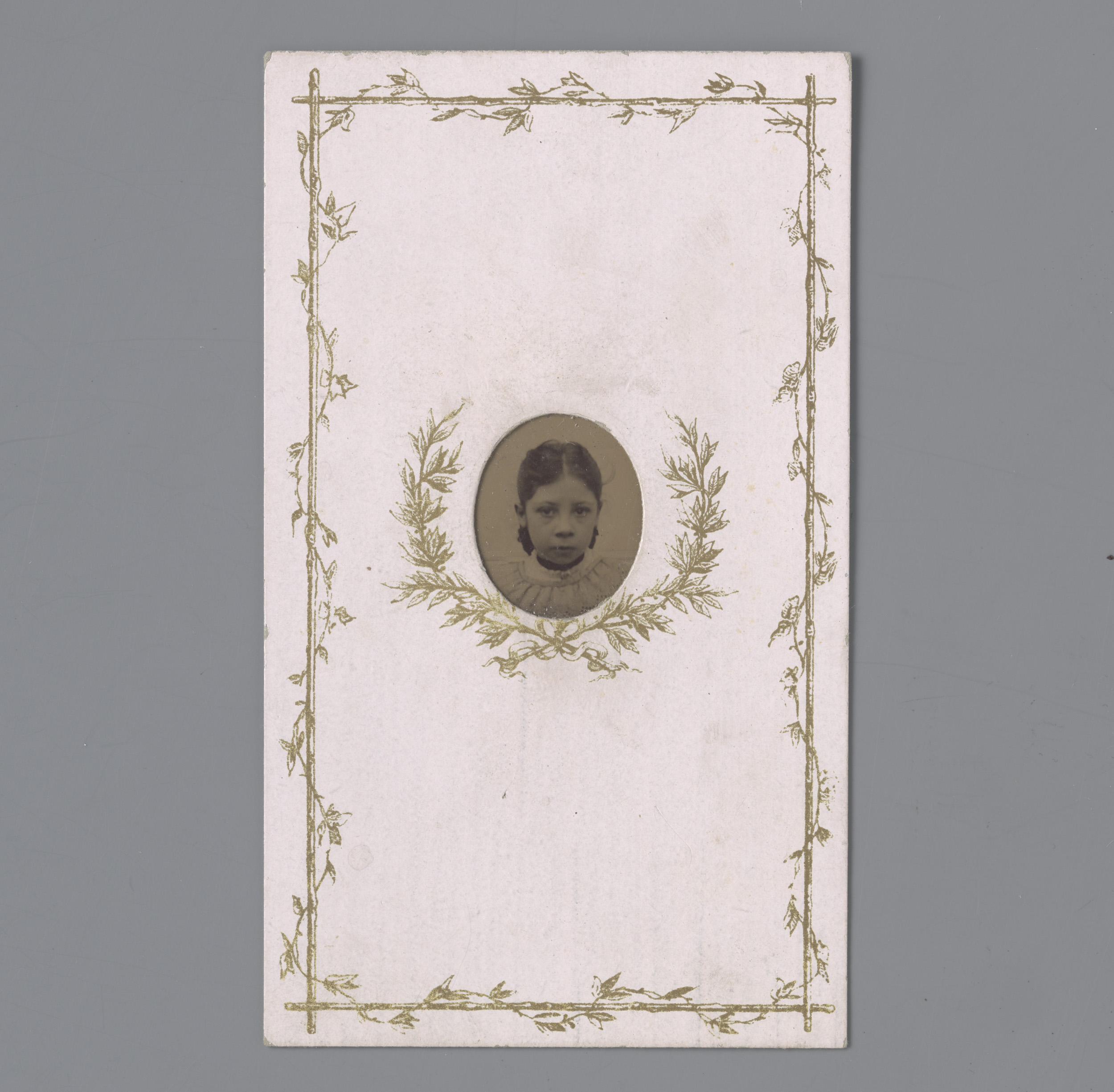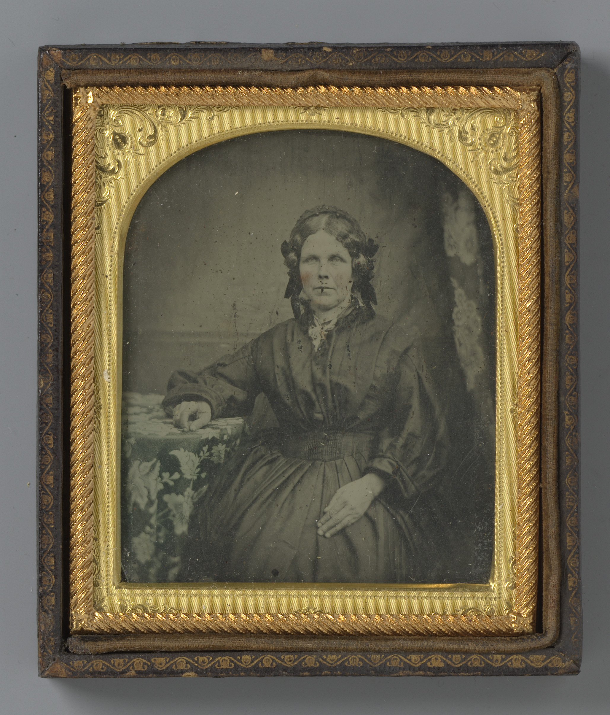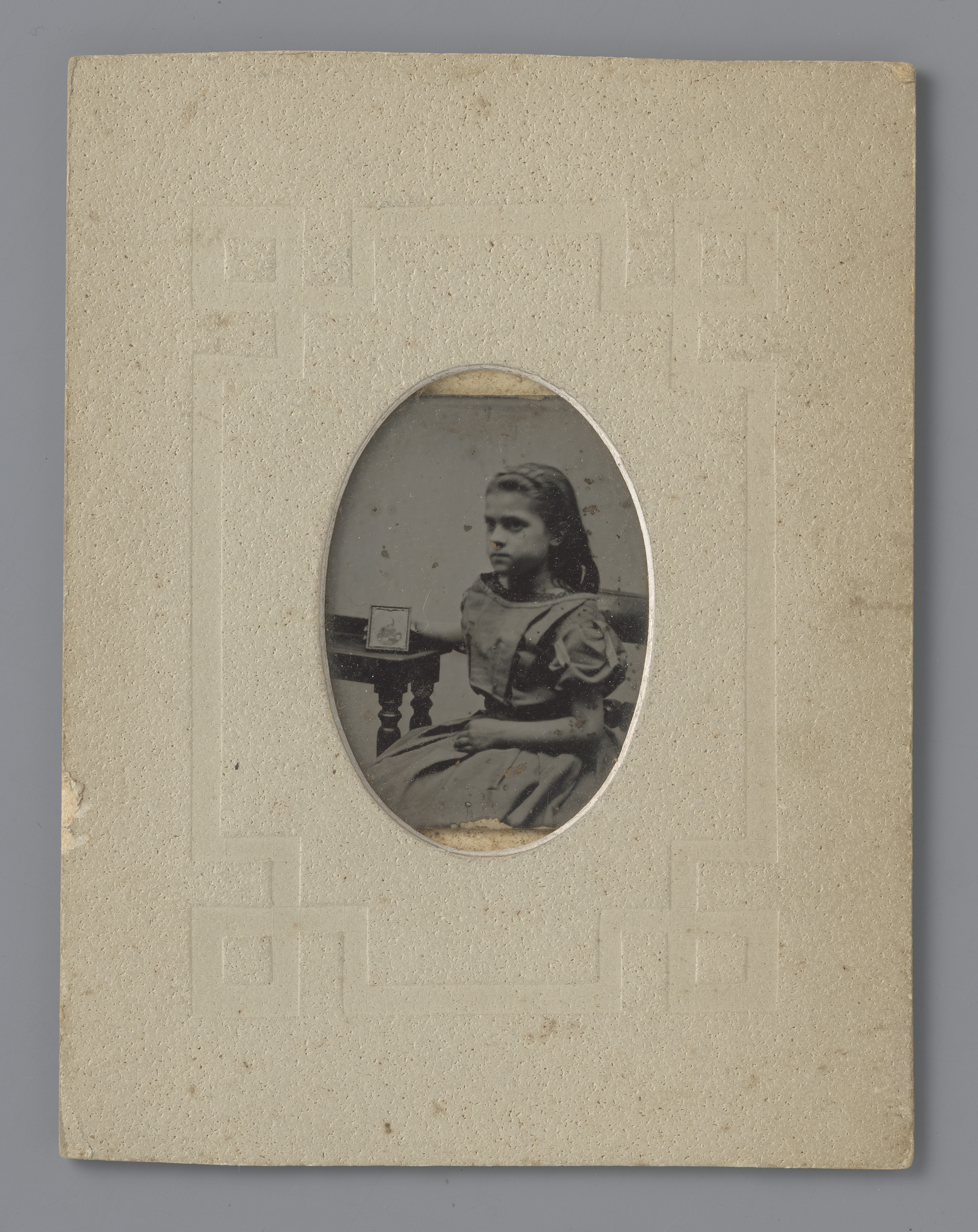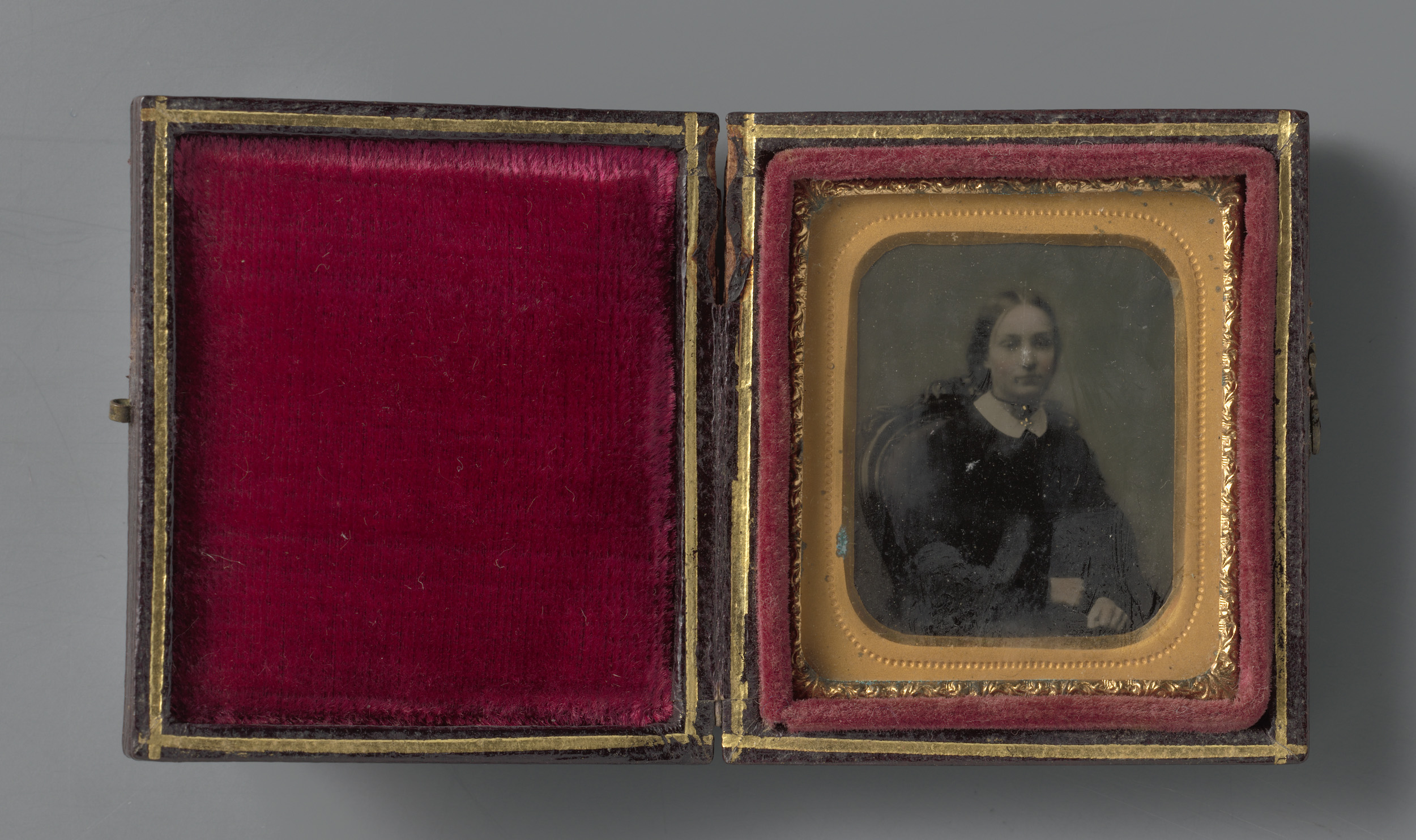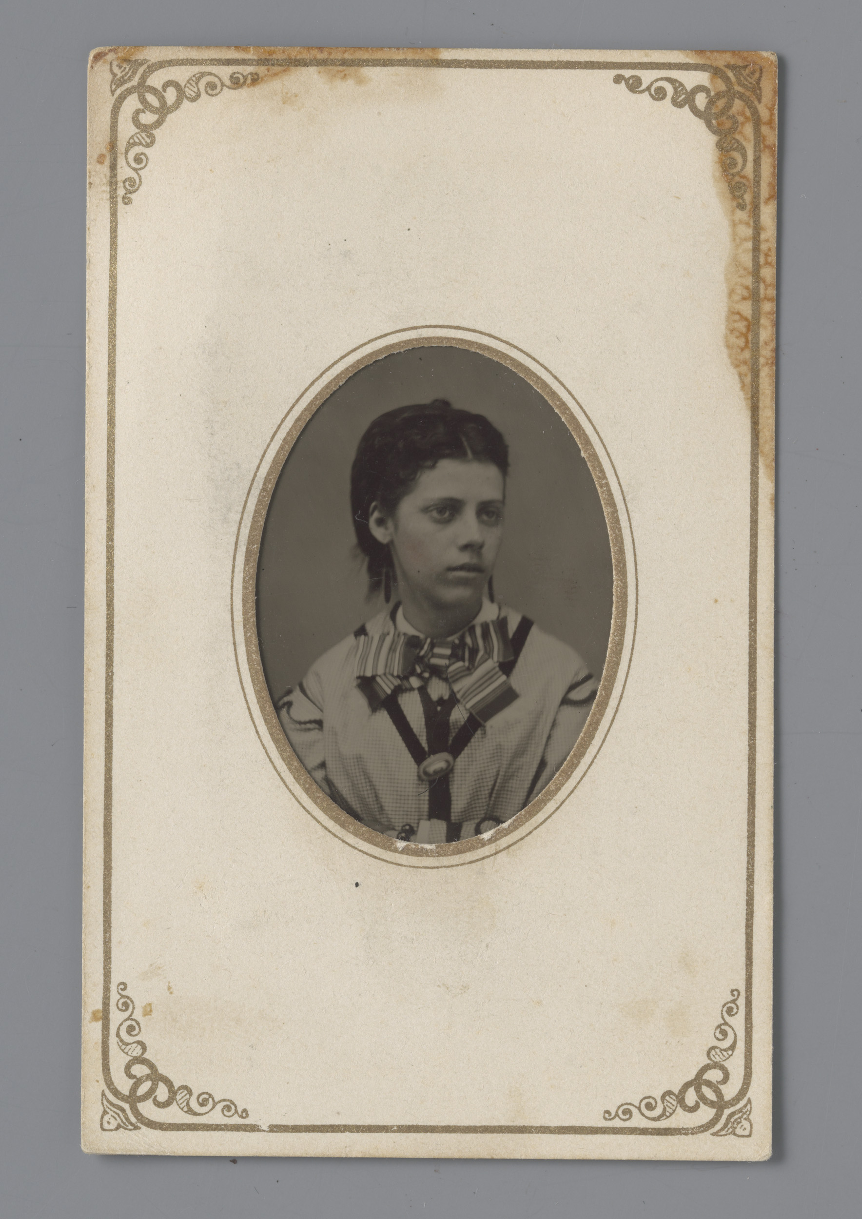 Portret van een onbekende jonge vrouw, zittend aan e...
