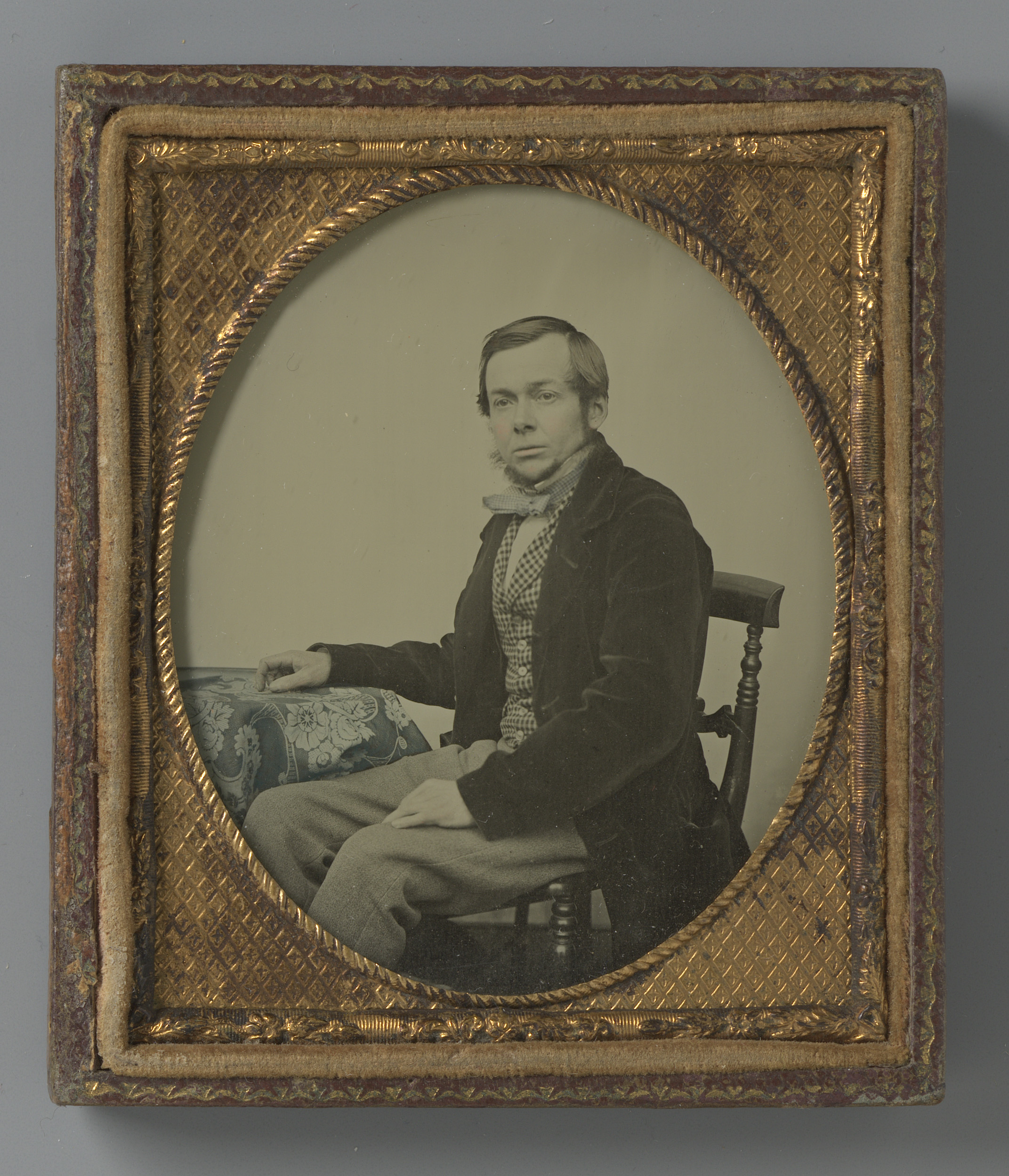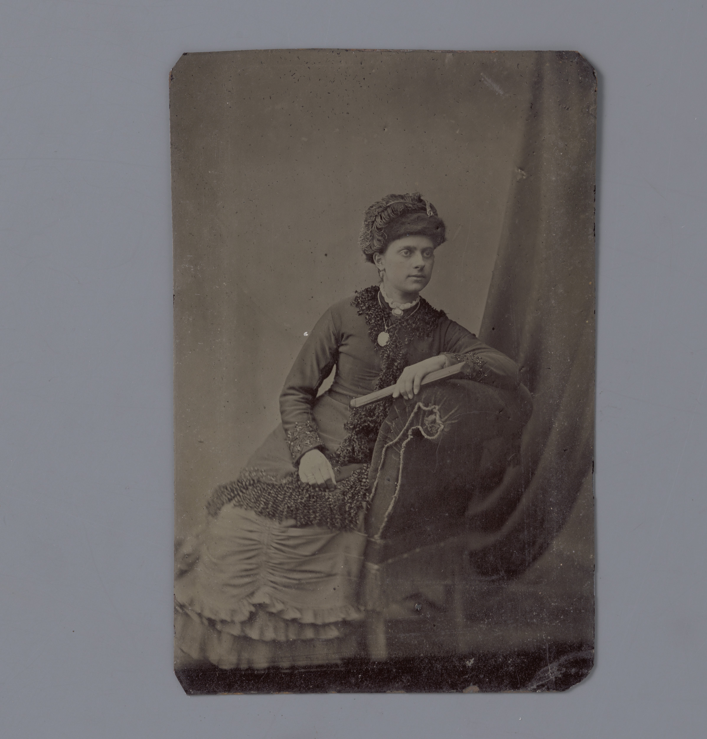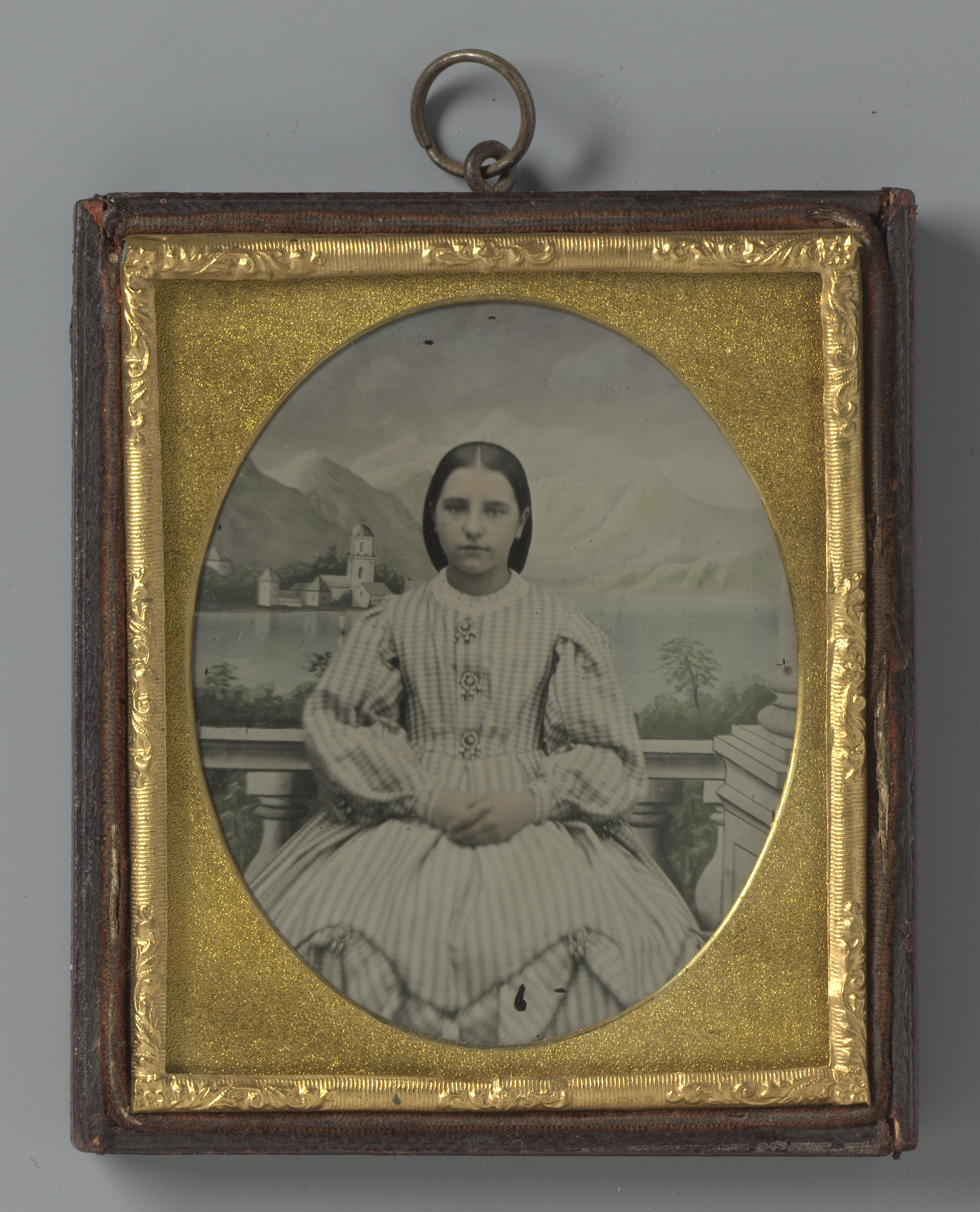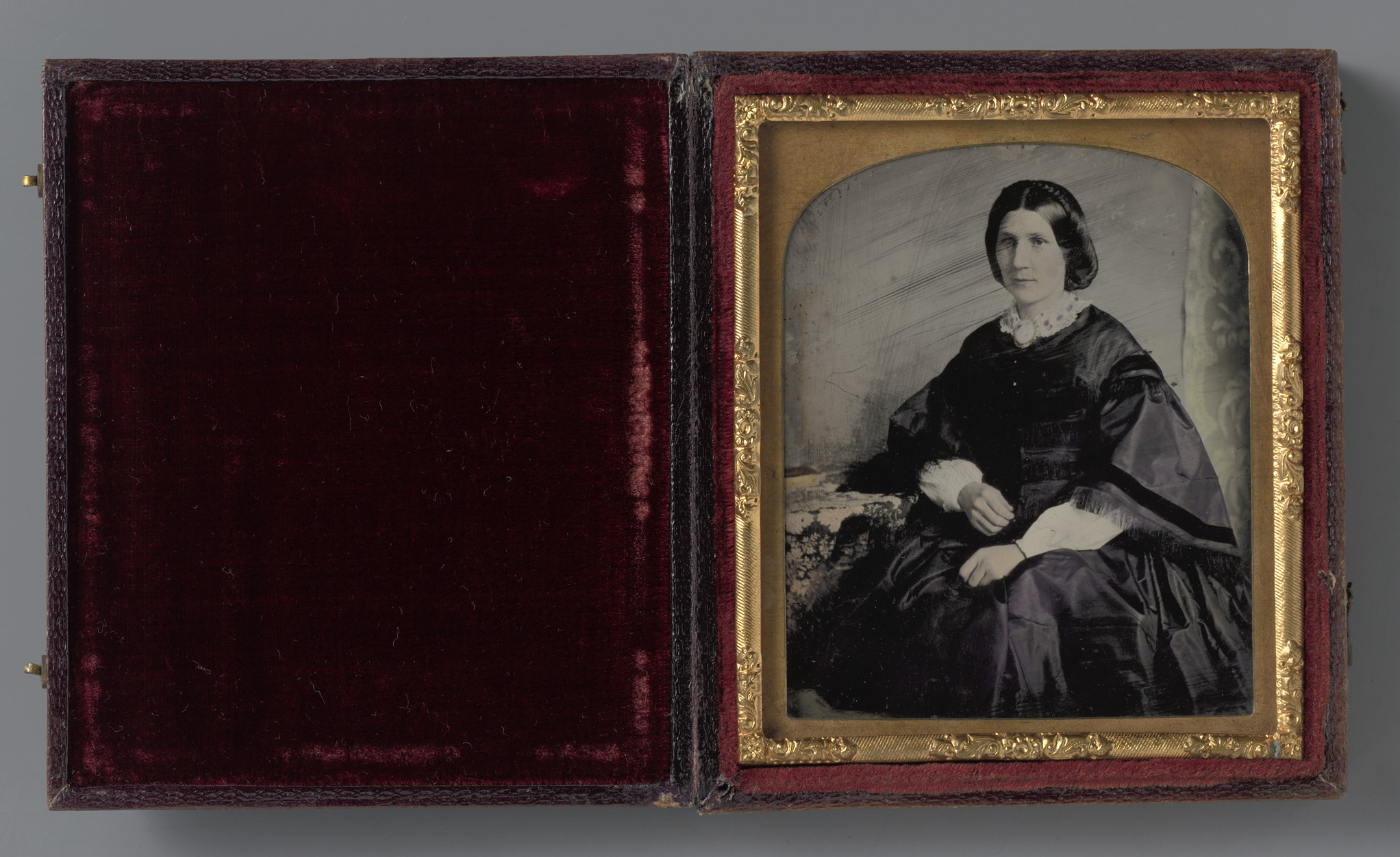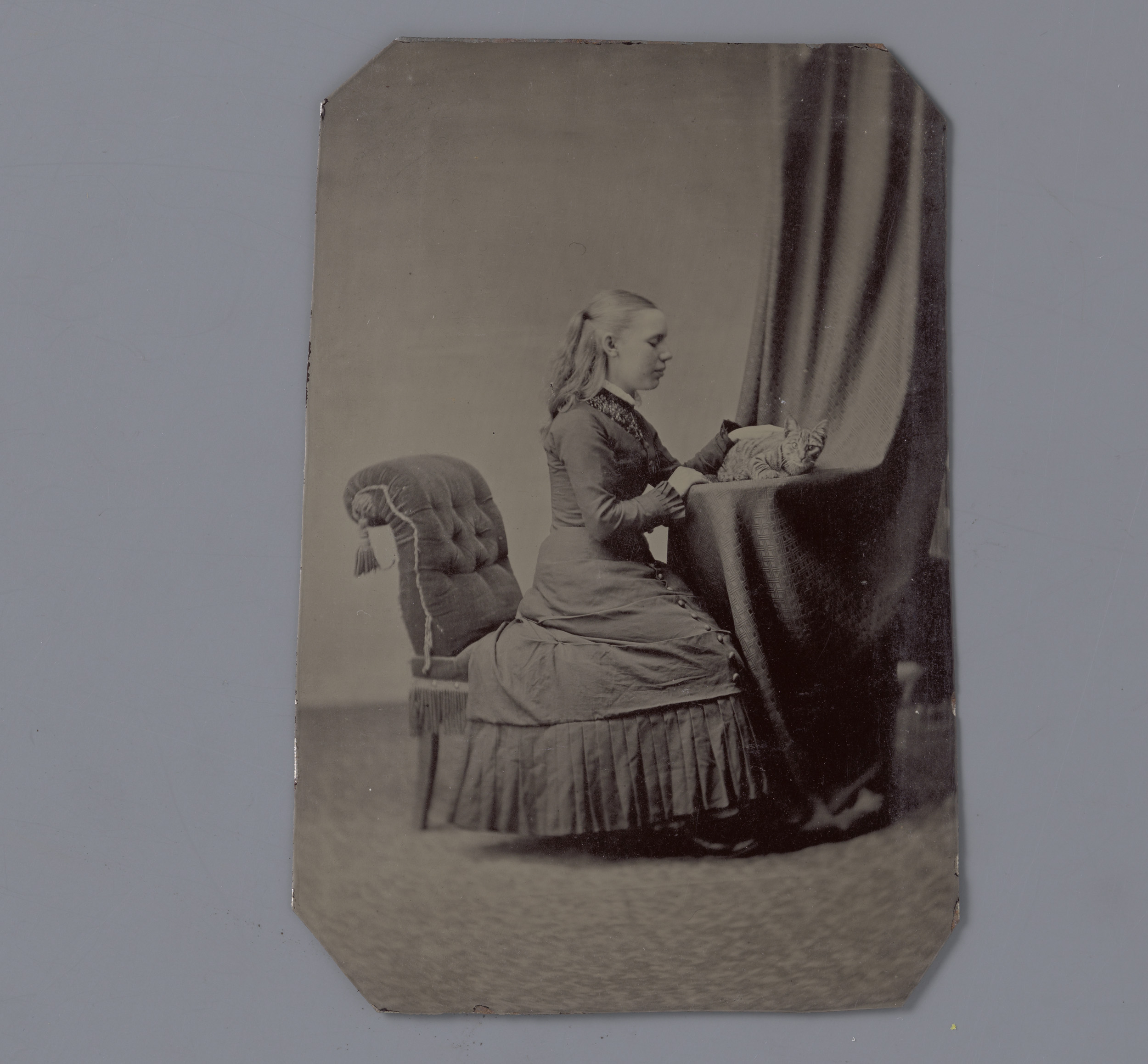 Portret van een onbekende jonge vrouw, zittend aan e...
