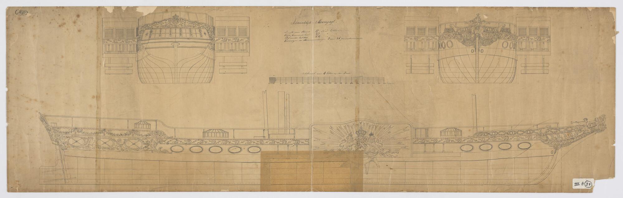 Lijnenplan van van het koninklijk raderstoomjacht 'D...