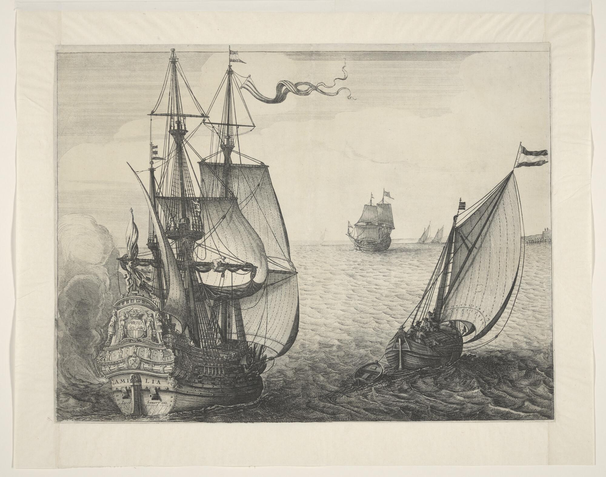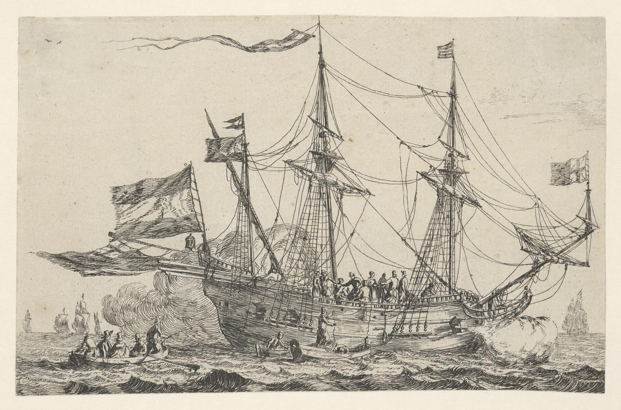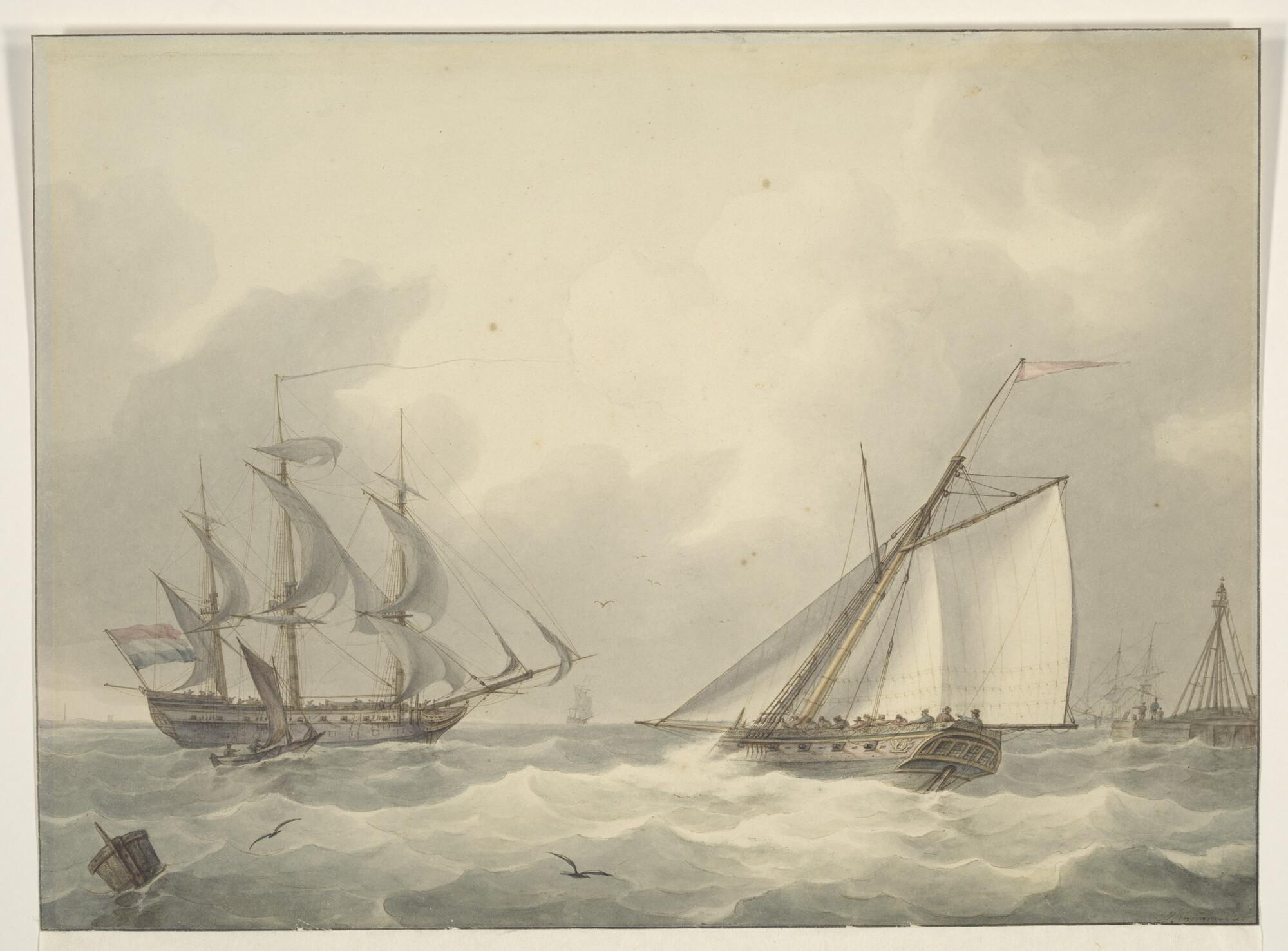 Een driemastschip en een paviljoenjacht van de Admir...