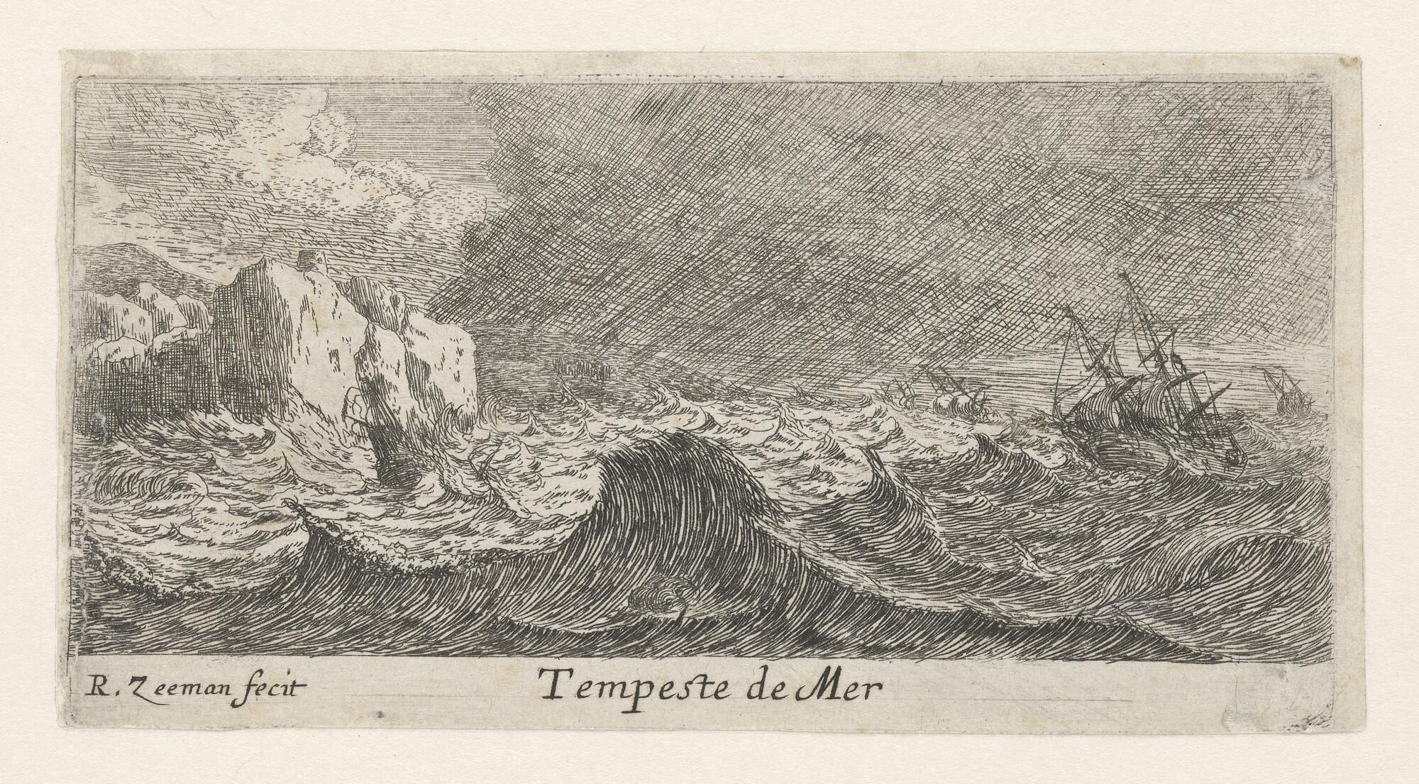 Prent 'Tempeste de mer', storm op zee