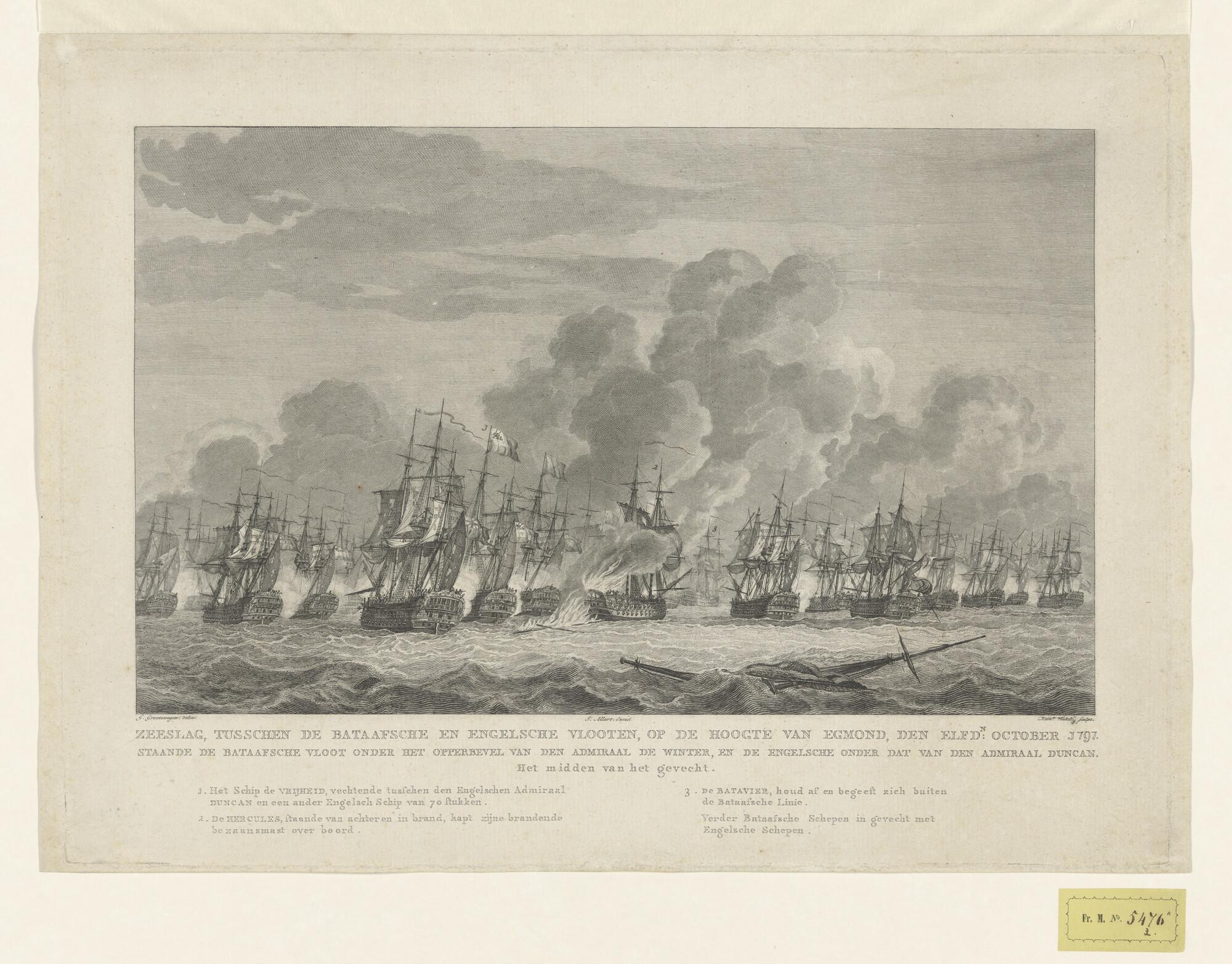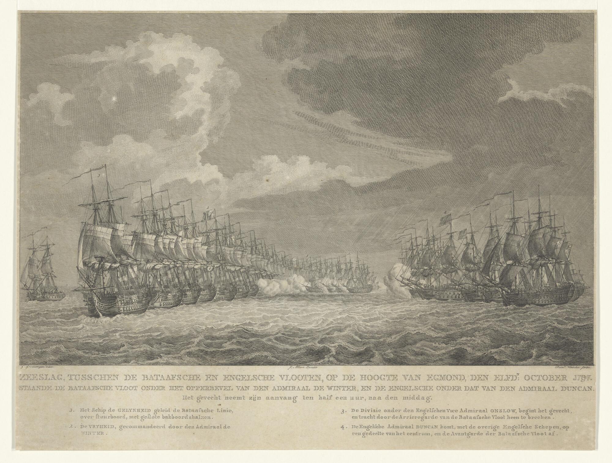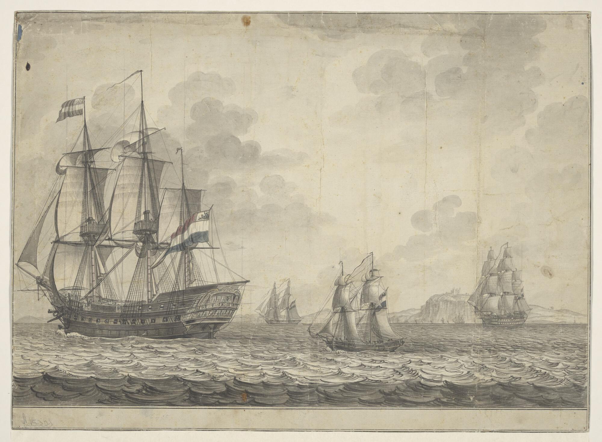 Een Bataafs eskader, bestaande uit twee fregatten, e...