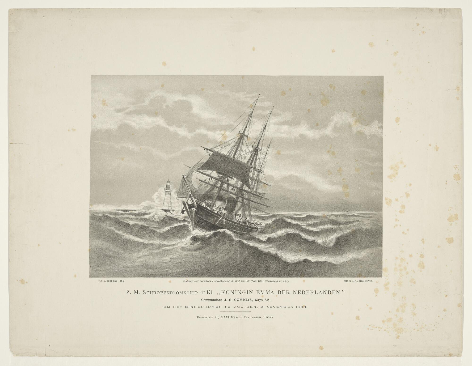 Het schroefstoomschip 1ste klasse Zr.Ms. Koningin Em...