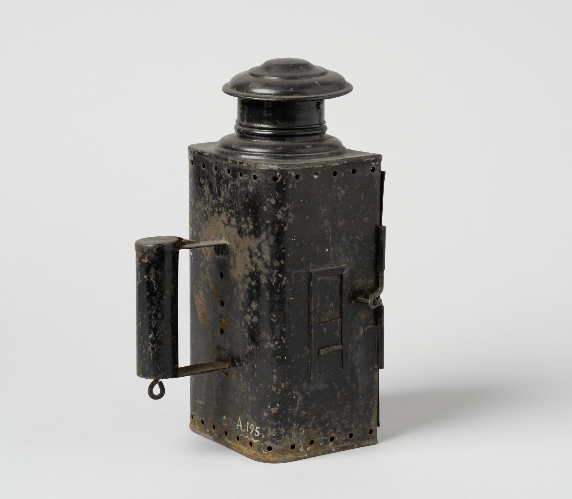 Handlantaarn van zwart geschilderd blik