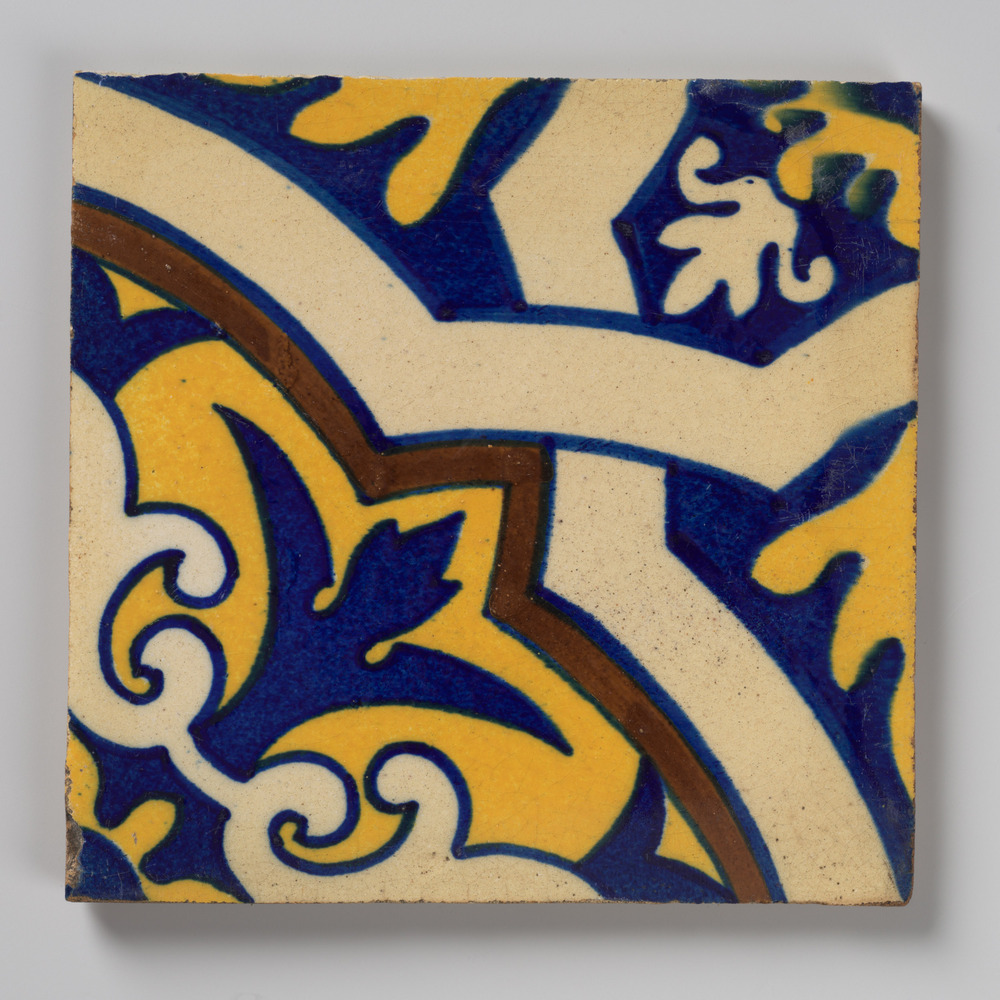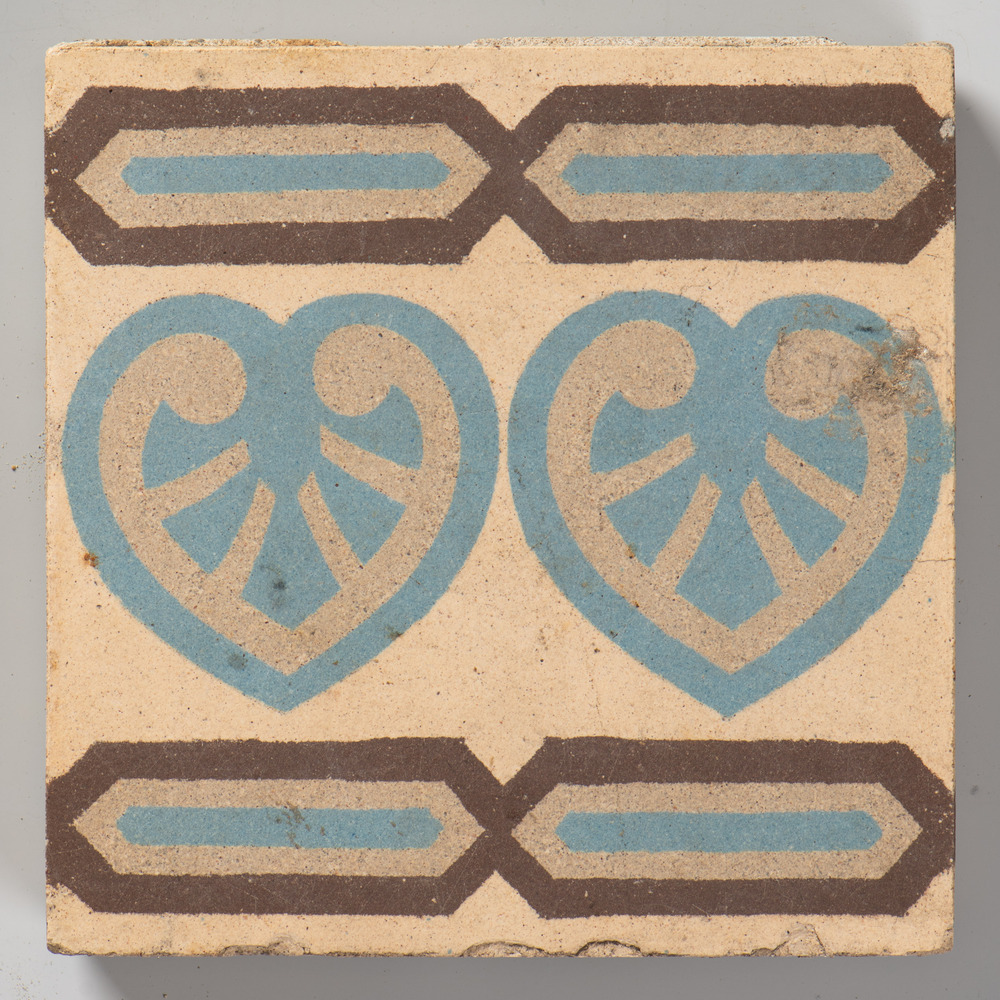 vloertegel van aardewerk, voorstellende ornament, ve...