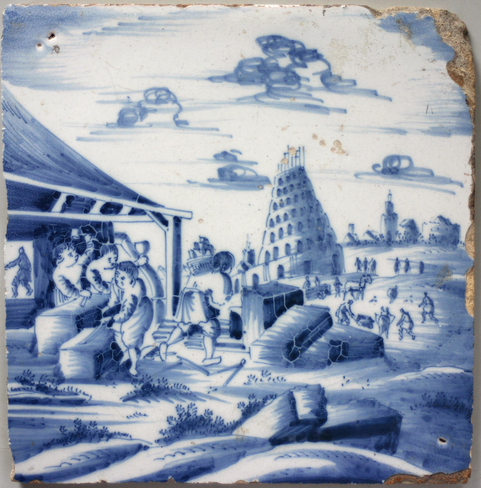 tegel van keramiek met tinglazuur, voorstellende: De...