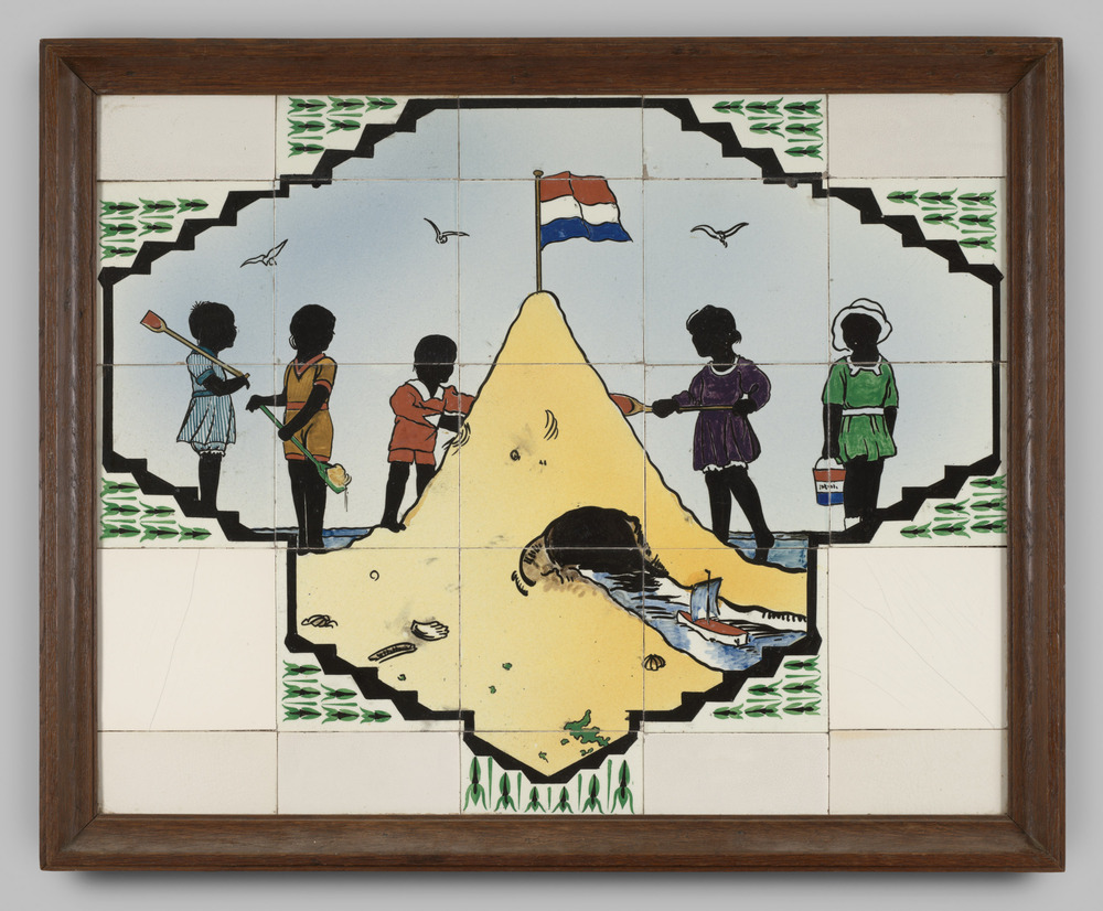 tegeltableau van aardewerk in onderglazuur, voorstel...