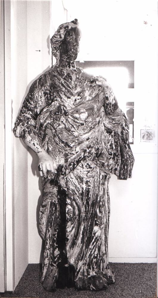 Beeld van vrouwe Justitia boven de Waag.