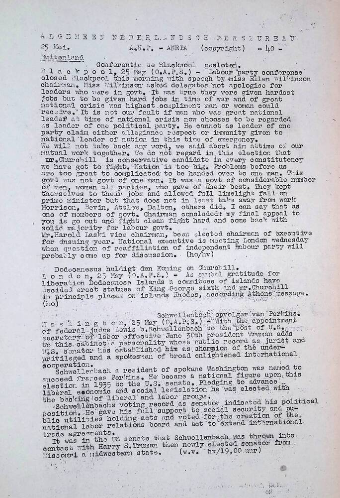 Algemeen Nederlandsch Persbureau, mededelingen, 30 m...