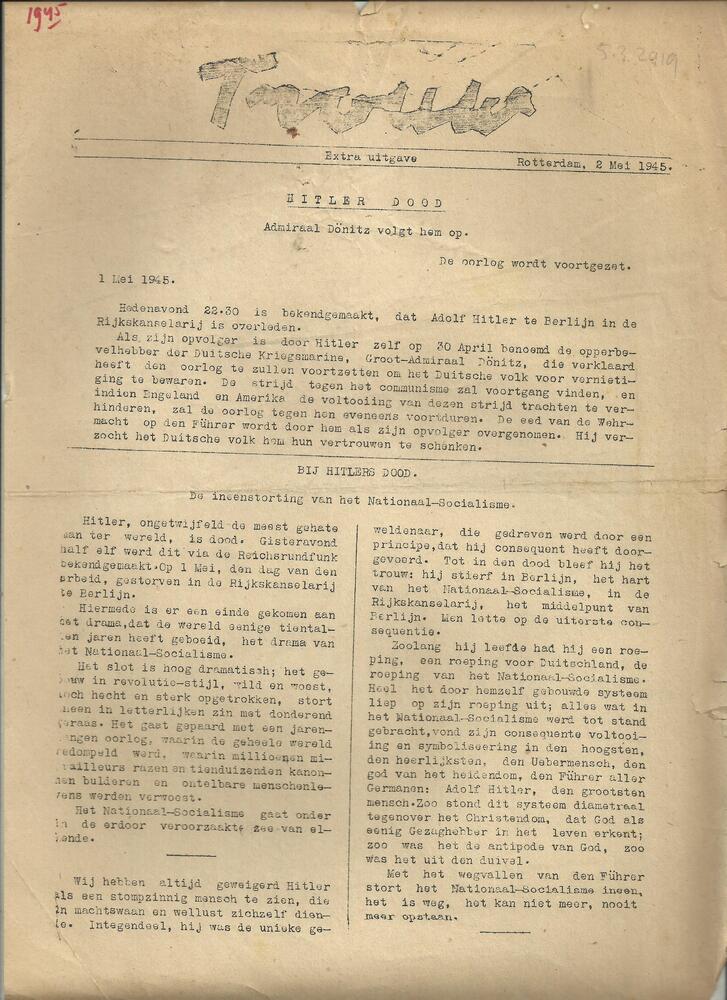 Het Parool, extra bulletin, 6 mei 1945, No 1