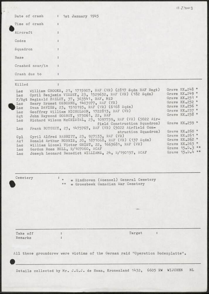 Crashkaart Mr J.G.J. de Haan, Wijchen