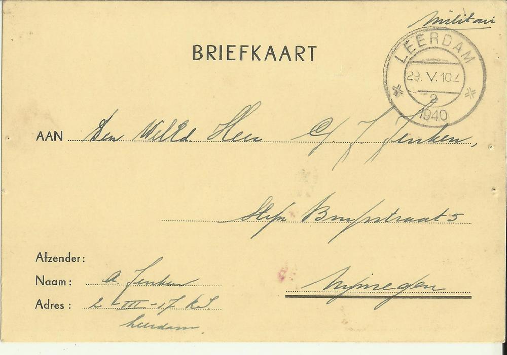 Kaart van Antoon Jeuken aan familie, 29 mei 1940