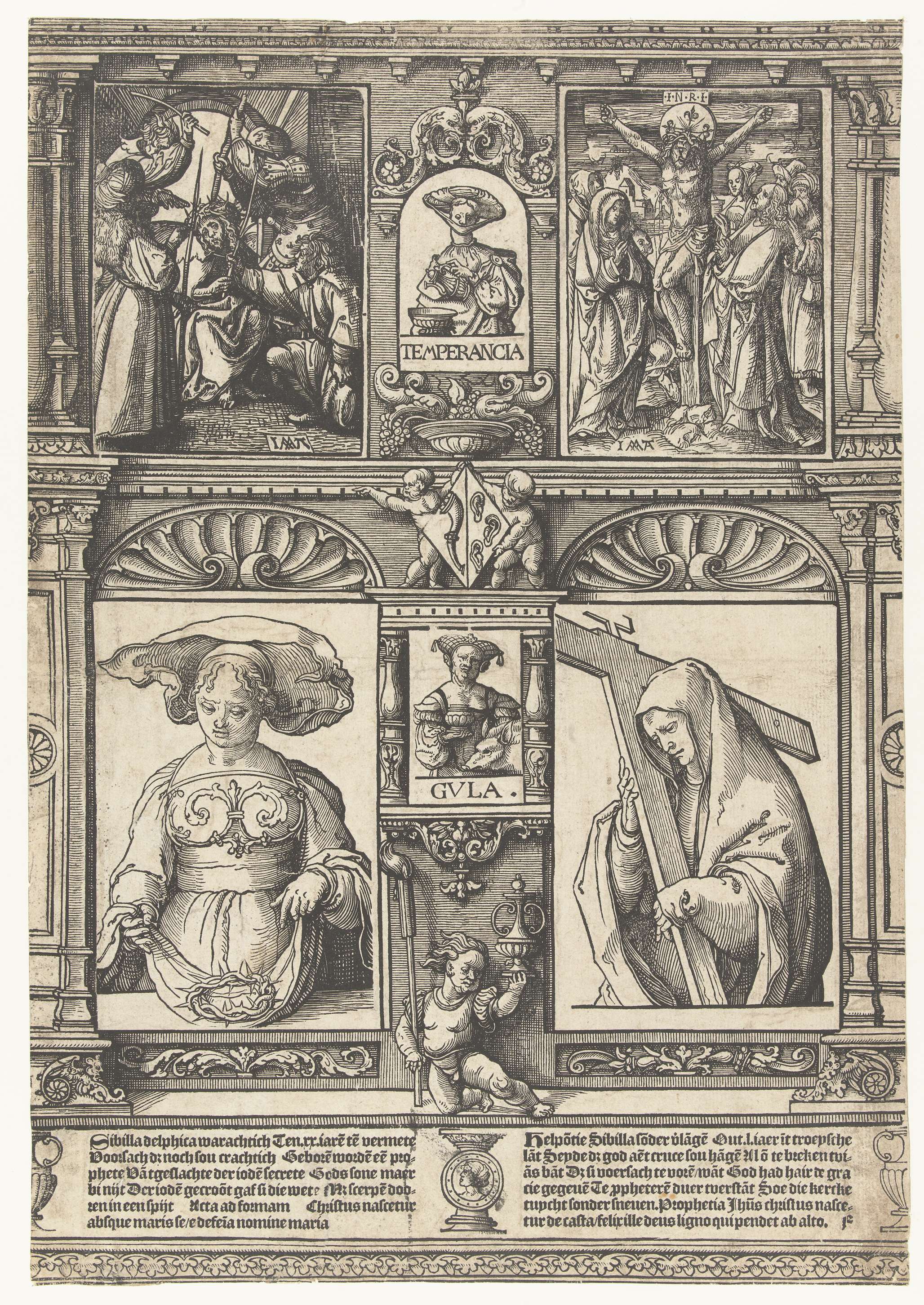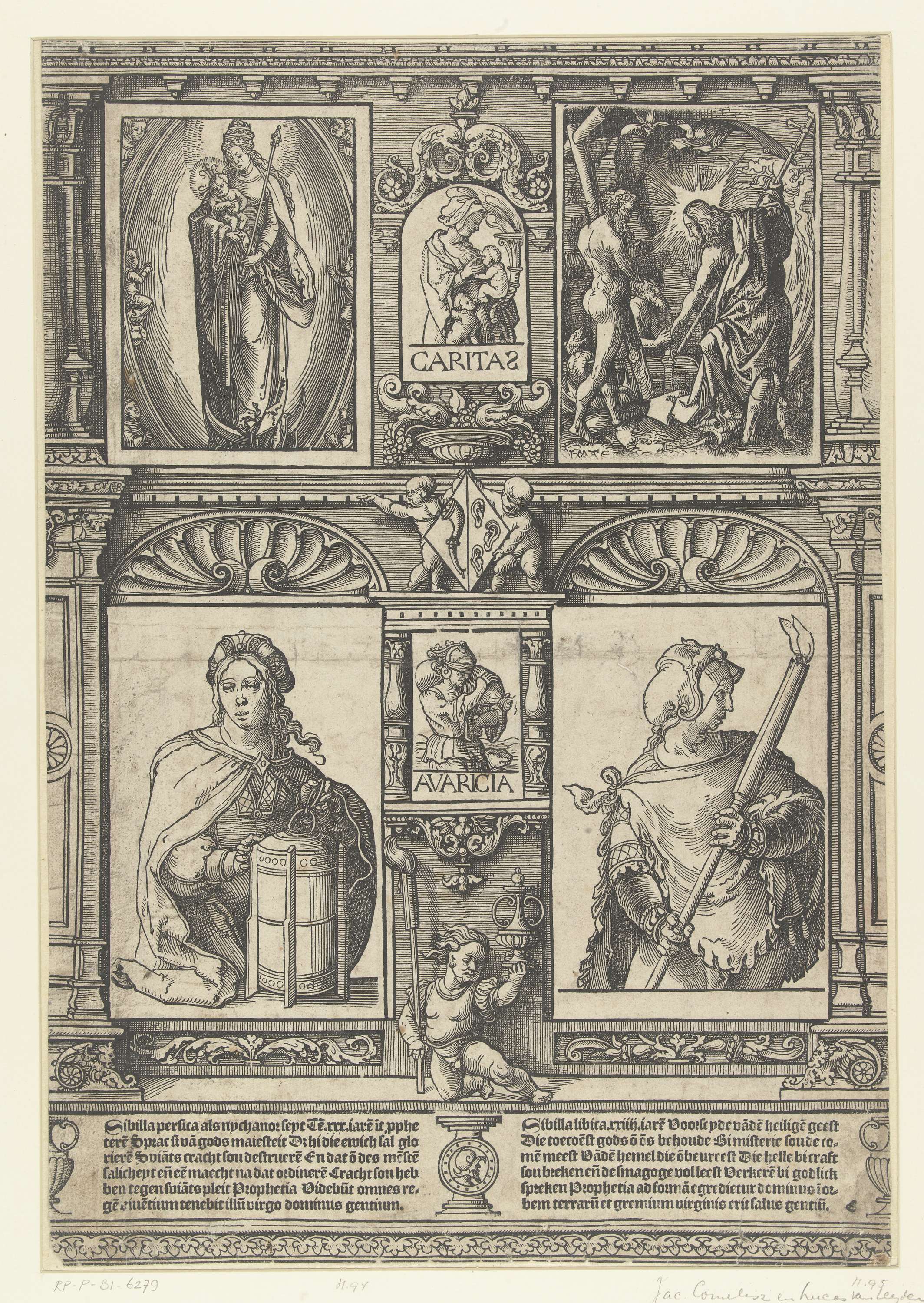 Blad met twee Sibyllen en twee bijbelse scènes