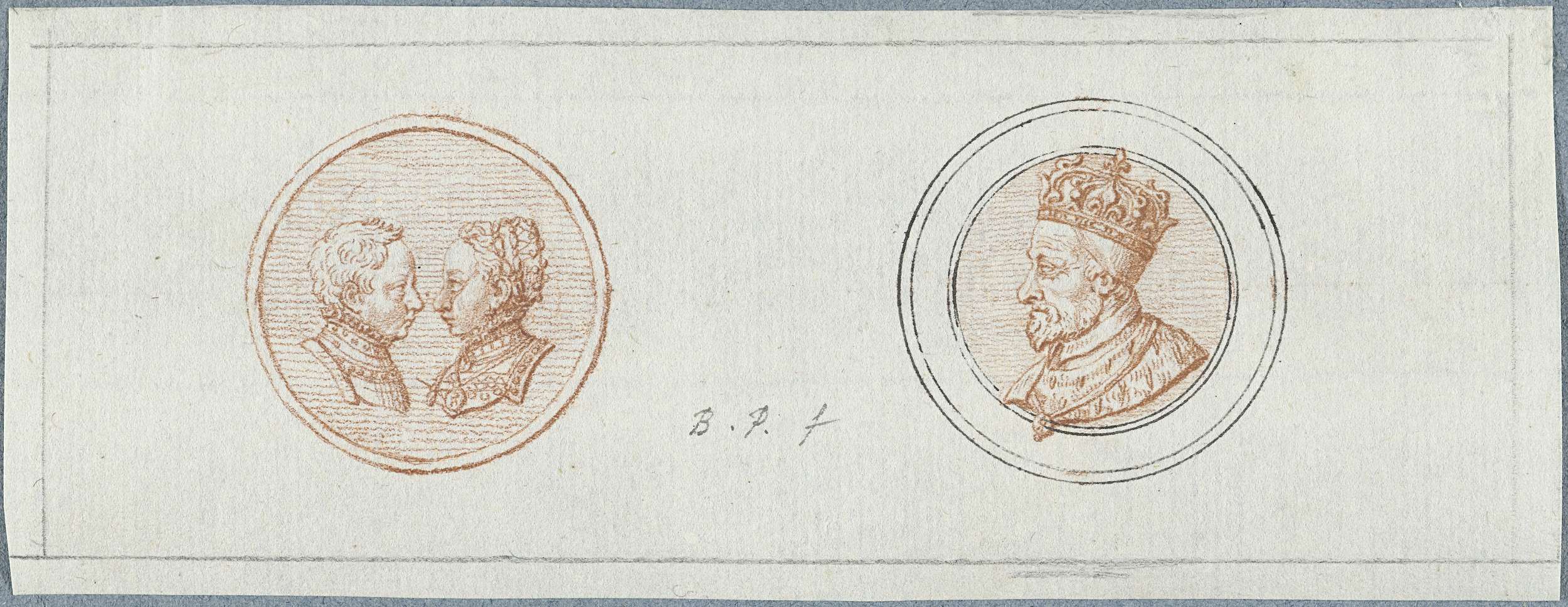 Voor- en achterzijde van een penning met portretten ...