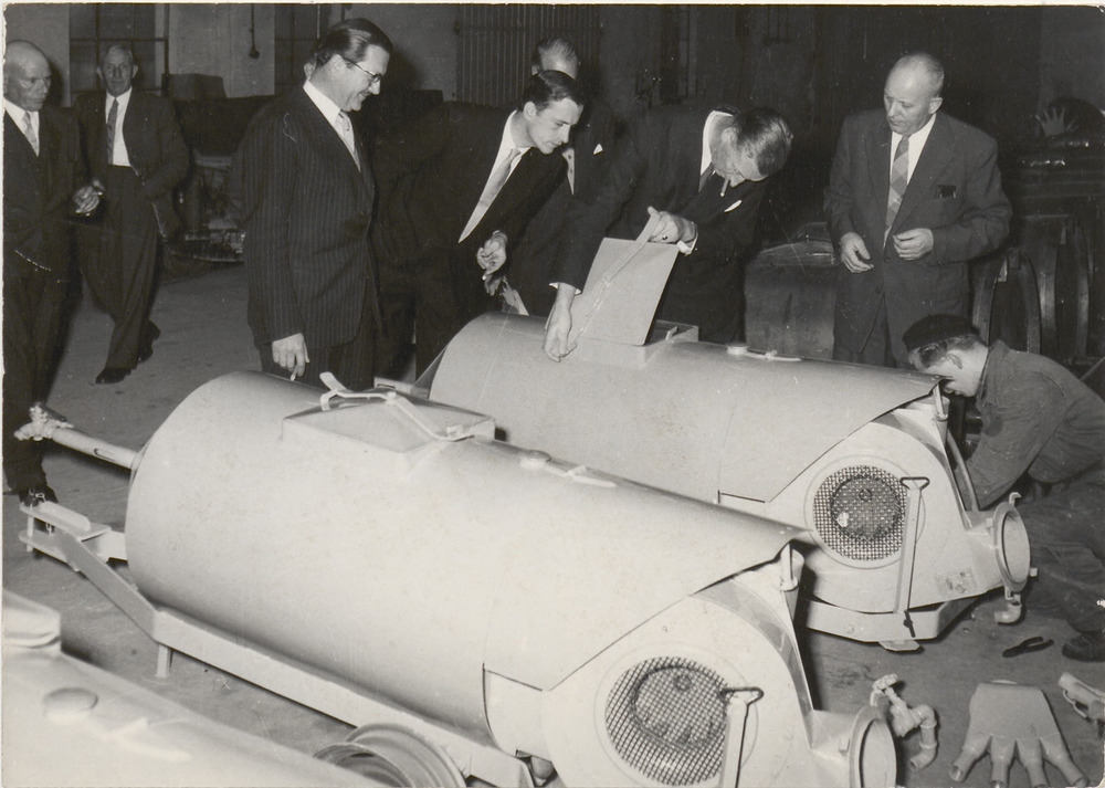 Bezoek aan k.w.h. te Wadenoyen. V.l.n.r.: Wethouder ...