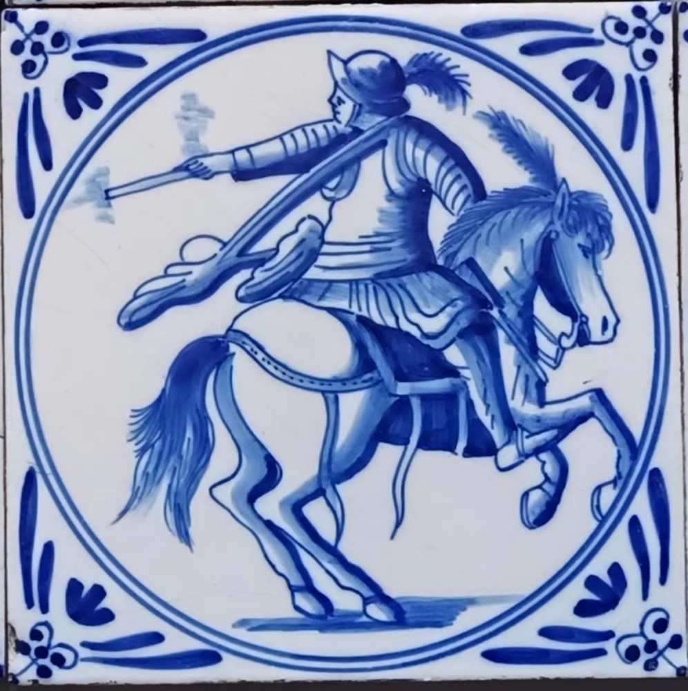 tegel van keramiek met tinglazuur, voorstellende: ru...