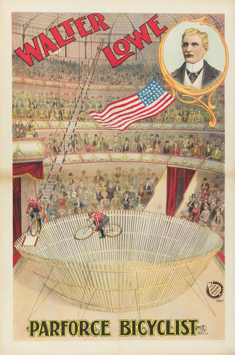 Walter Lowe, wielr. op schuine ladder + circustent-i...