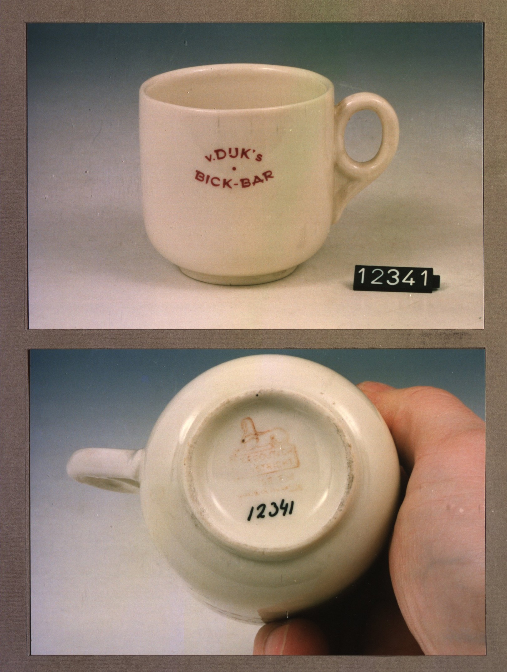 Kop met opschrift, model F met decor Bar-Bick