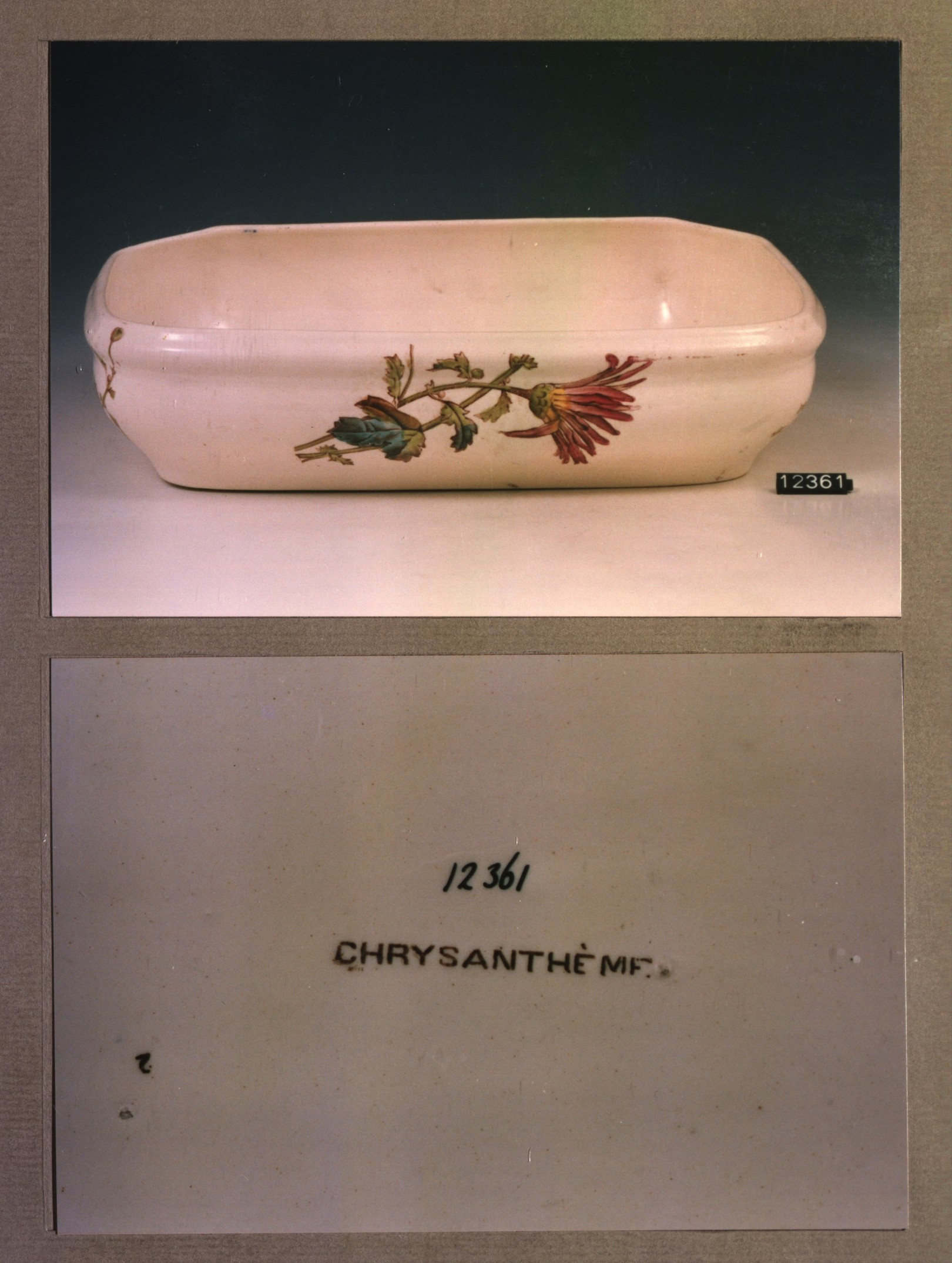 Schaal - hoekig met decor Chrysantheme