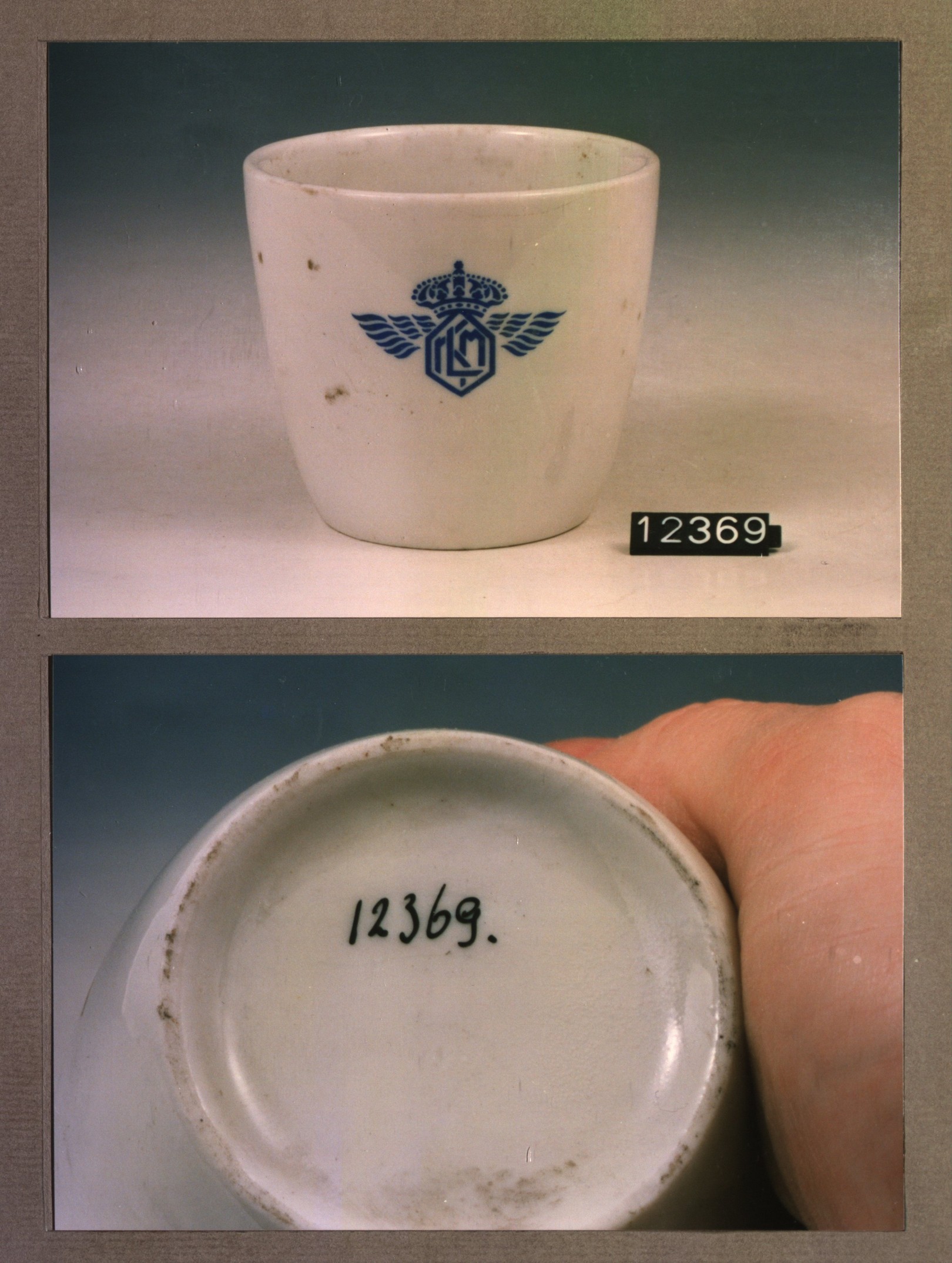 Kop met opschrift, model P zonder oor met decor K.L.M.