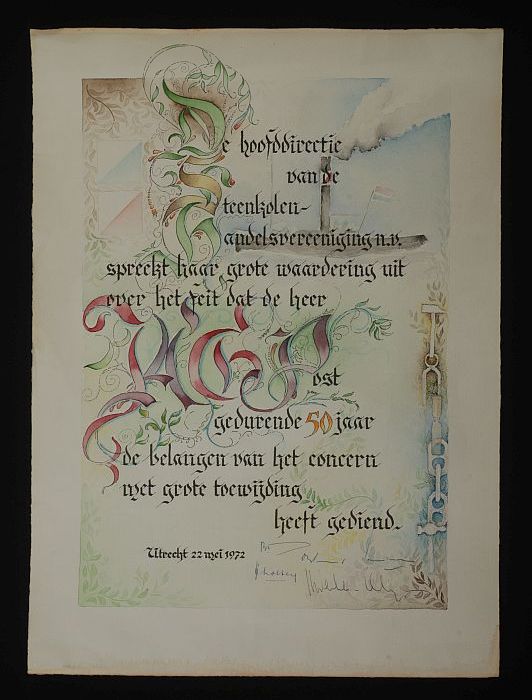 Oorkonde, uitgereikt aan J.A.G. Post ter gelegenheid...