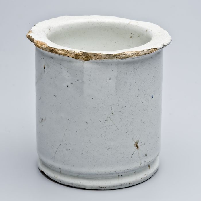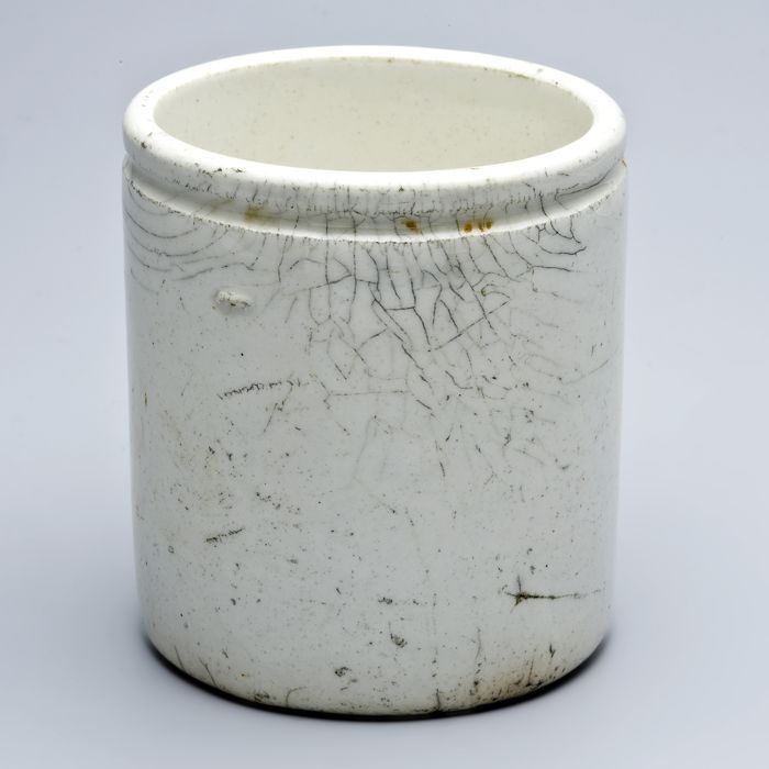 Witte zalfpot, geglazuurd, cilindrisch van vorm met ...