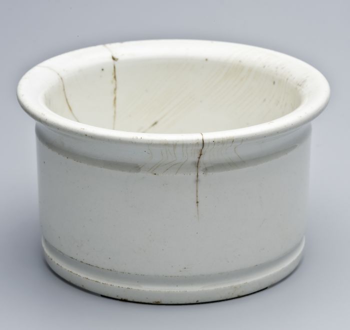 Witte zalfpot, laag en wijd model met bindgroef onde...