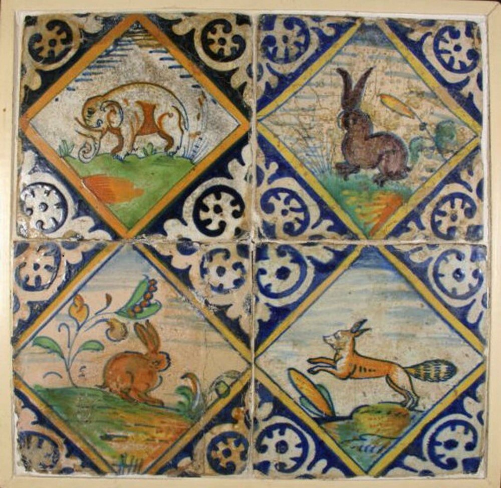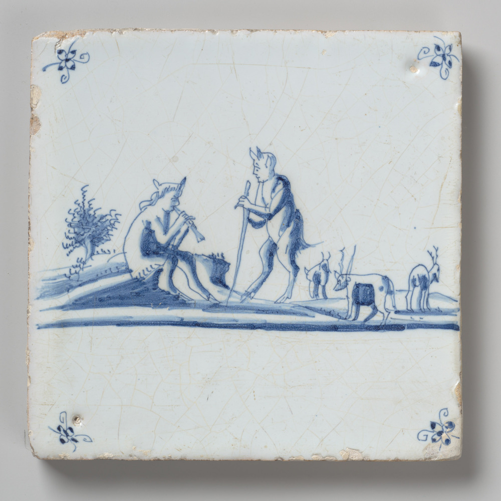 randtegel van aardewerk met tinglazuur, voorstellend...
