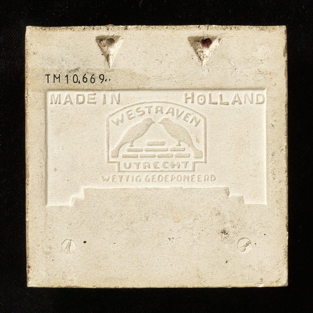 tegel van keramiek, gesjabloneerd, voorstellende: vo...