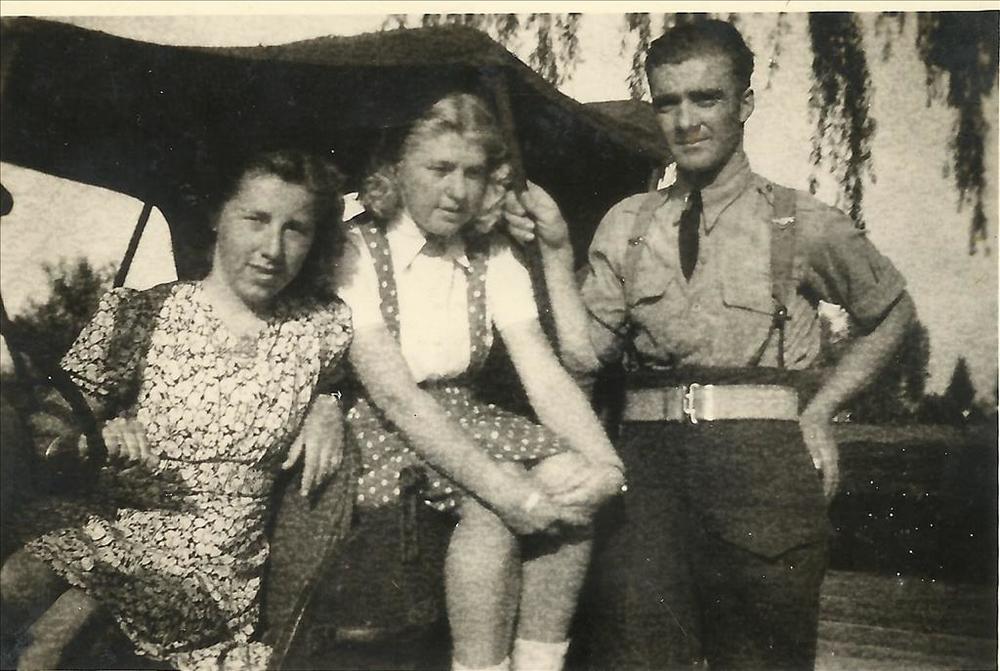 twee jonge vrouwen in jeep met militair